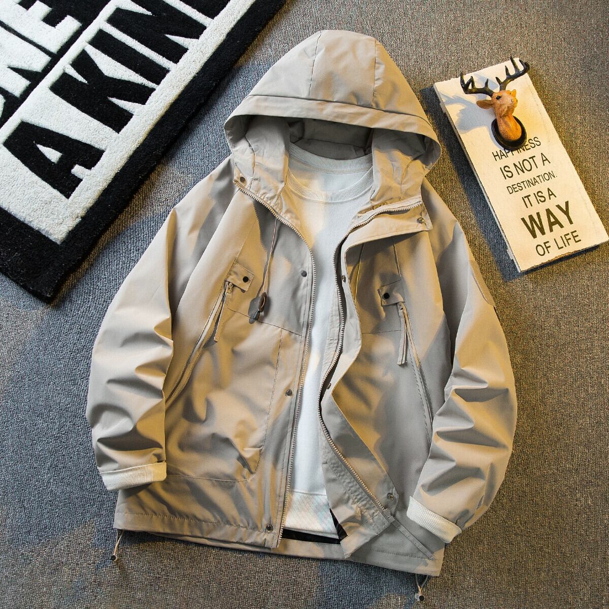 水平機能風アウトドアワークウェアジャケット男性春の新しいマウンテンスタイルメンズウインドブレーカー防水ジャケット男性 スプリング 春物 3381992969283030
