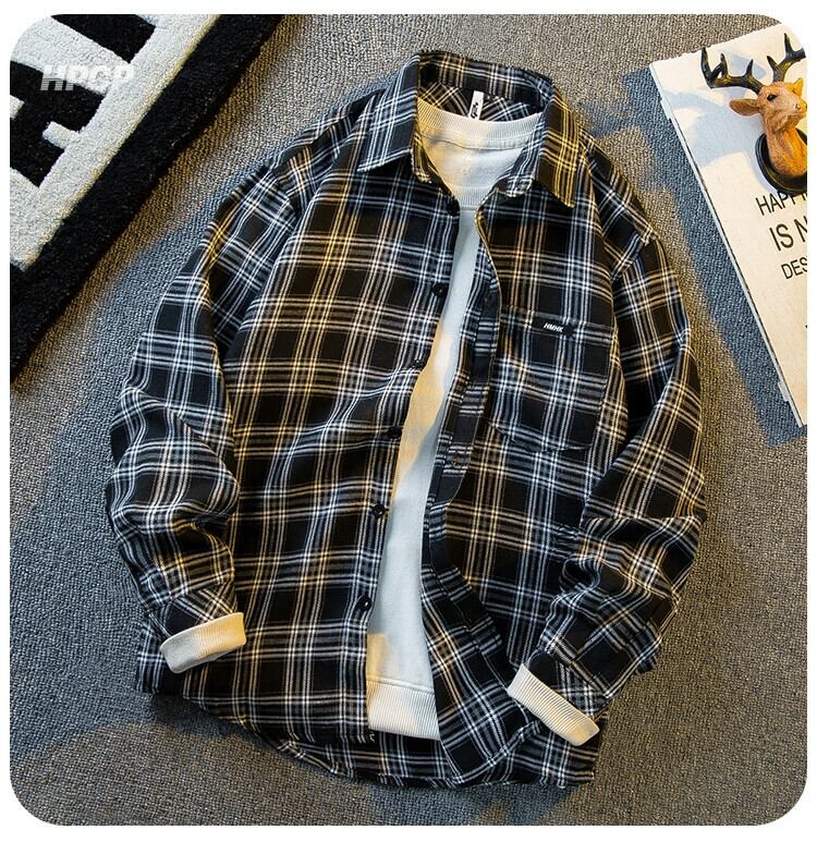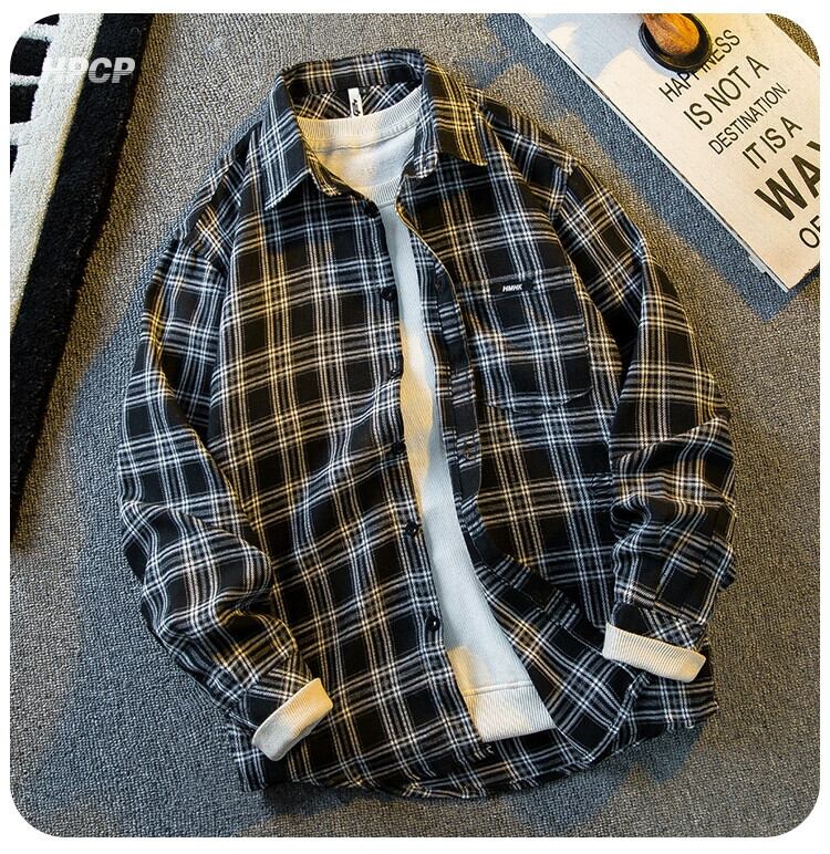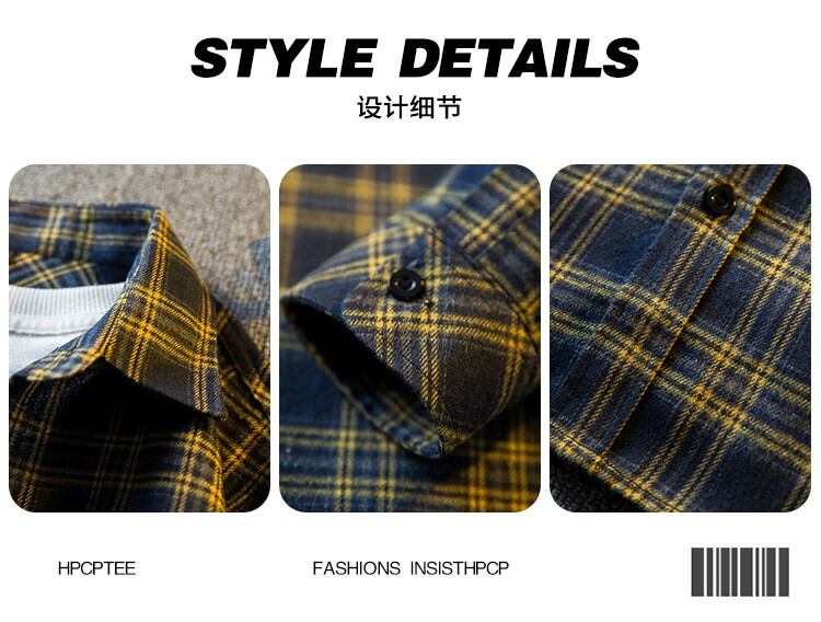 Hengpai ese レトロ長袖チェック柄シャツメンズ 2024 春の新しいハイエンドトレンディなワークシャツジャケット ロング スプリング 春物 3381985821093782