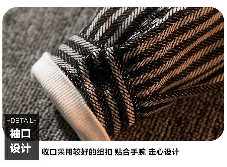 横長のトレンディな春と秋のレトロな起毛長袖ストライプシャツ、メンズ、ハイエンド、ハンサム、カジュアルシャツとジャケット ロング スプリング 春物 オータム 秋物 3381995132383390