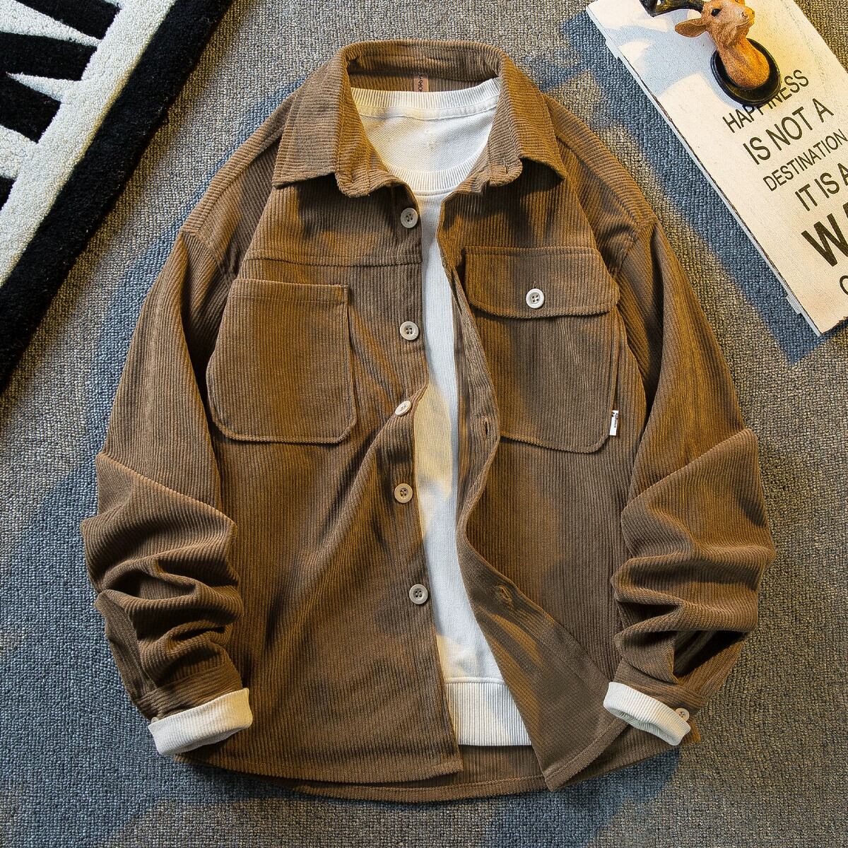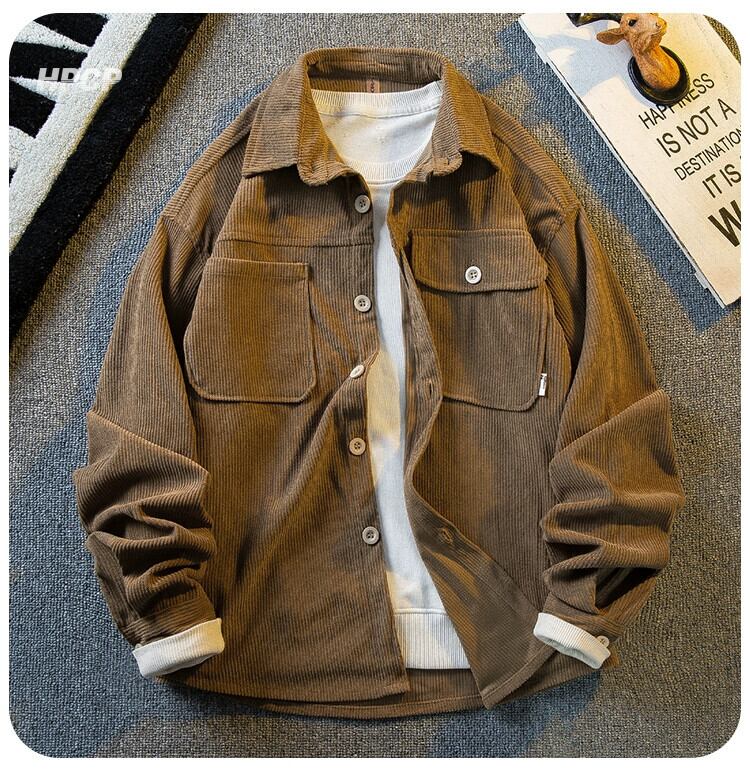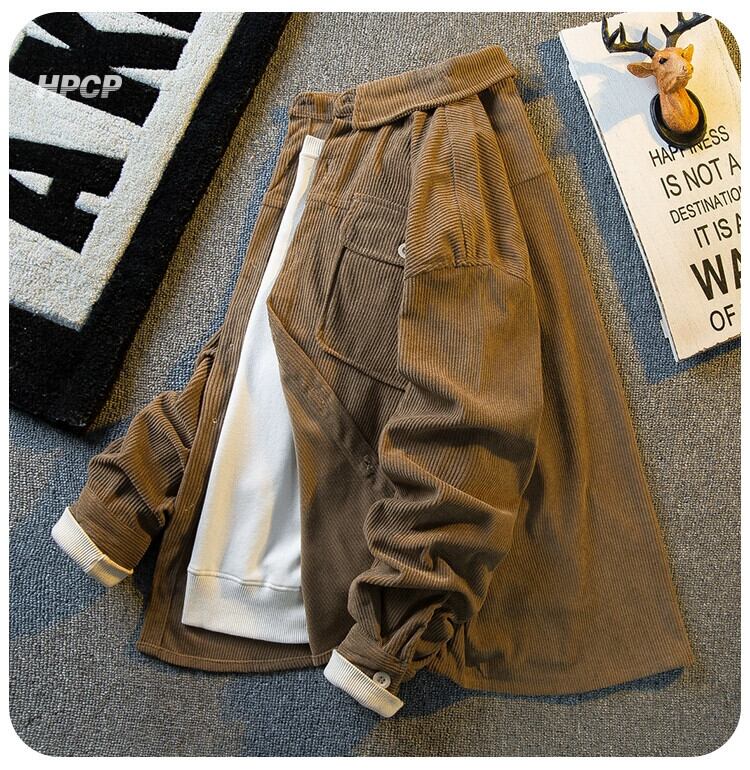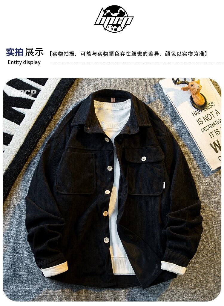 Hengpai 早春レトロワークウェアコーデュロイシャツメンズ長袖春秋メンズ高級服シャツジャケット ロング スプリング 春物 オータム 秋物 3381988156563879