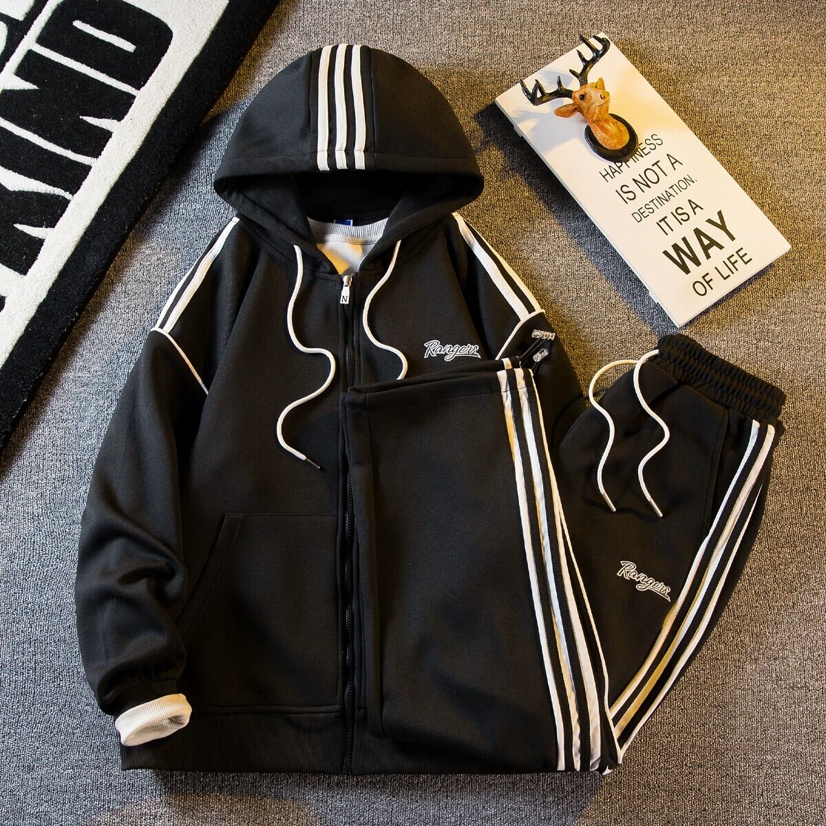 Hengpai ハイエンドカジュアルスポーツウェアスウェットシャツメンズスーツ春と秋の男の子トレンディなブランドハンサムマッチング 2 点セット スプリング 春物 オータム 秋物 3381992404616692