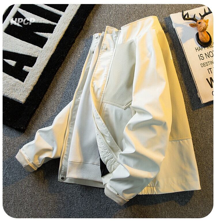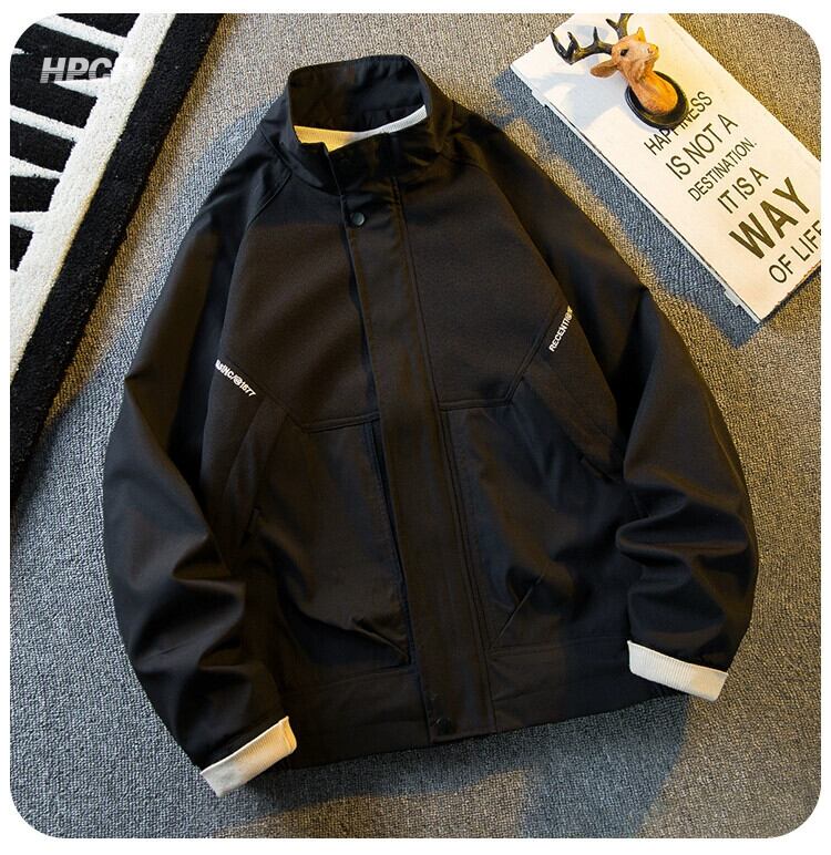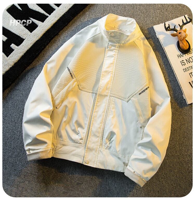 Hengpai メンズ 2024 新スタイルハンサムメンズスタンドカラースプライシングワークジャケットメンズ春と秋のカジュアルジャケットトップス スプリング 春物 オータム 秋物 3381954329560301