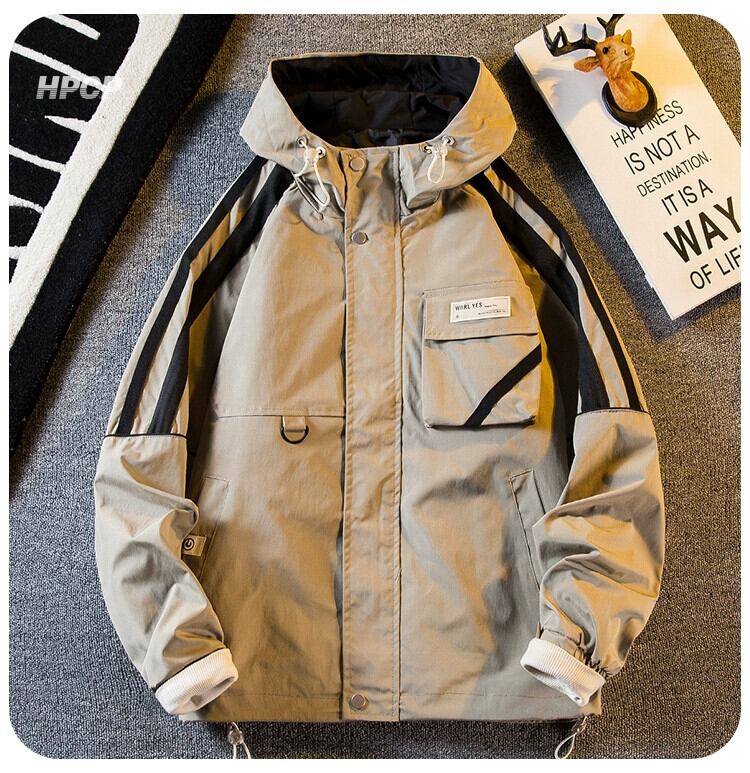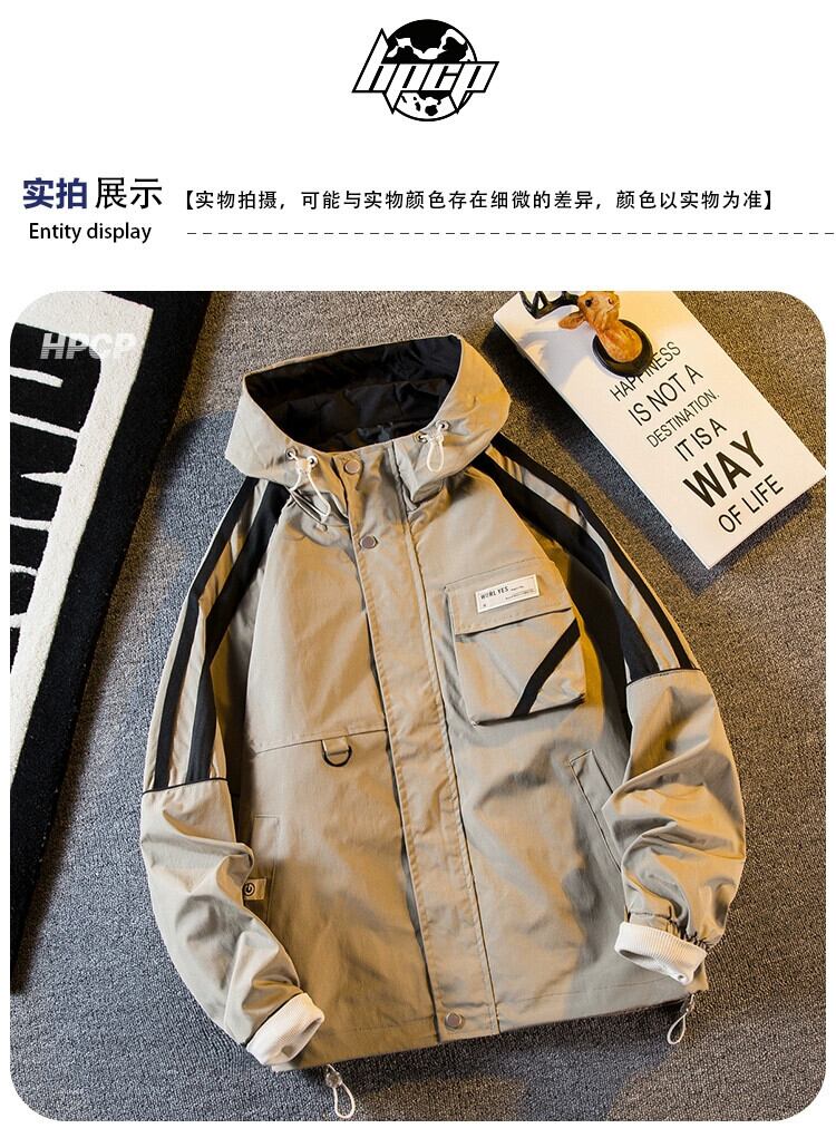 Hengpai 春山スタイル屋外コントラストカラーフード付きジャケットメンズ春と秋のトレンディな防風防水ジャケット スプリング 春物 オータム 秋物 3381966229931281