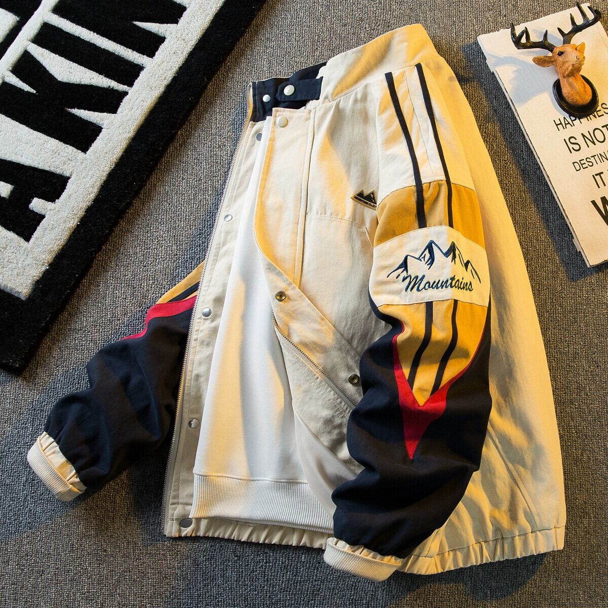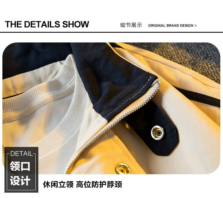 Hengpai トレンディなアメリカのトレンディなブランドスタンドカラーコントラストカラージャケットメンズ春秋マウンテンスタイルレトロメンズルーズワークウェアジャケット スプリング 春物 オータム 秋物 3381915970724354