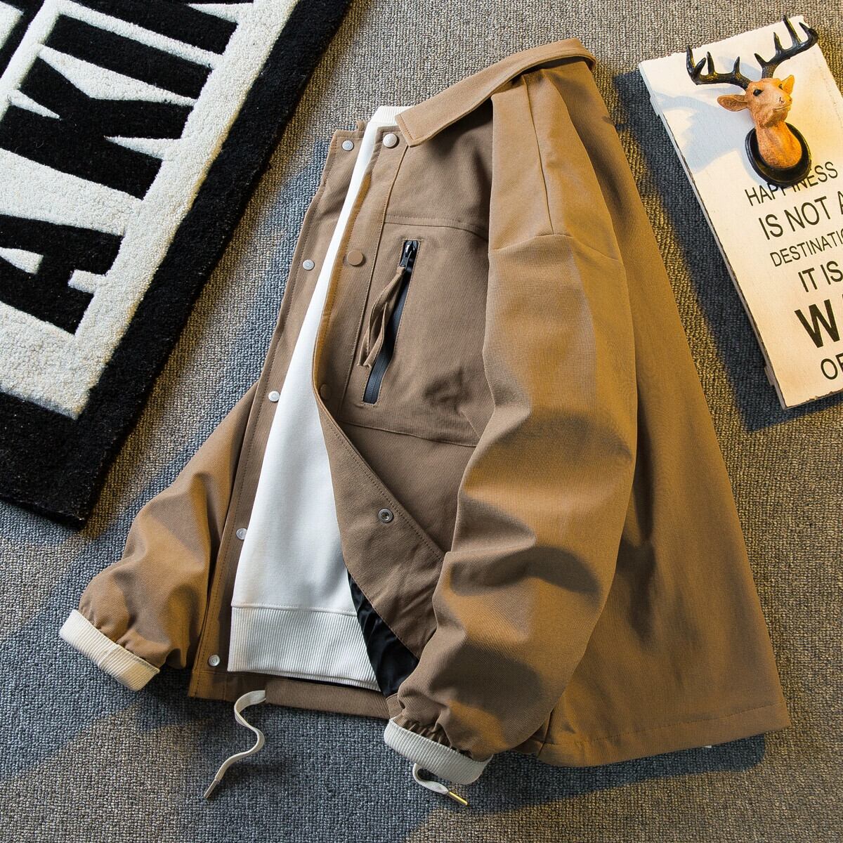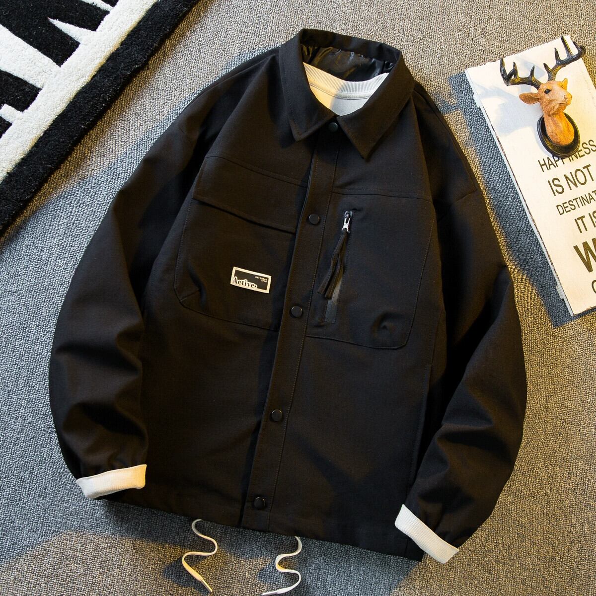 Hengpai ese レトロメンズカジュアルシャツスタイルジャケットハンサムハイエンドラペルワークジャケットメンズ春と秋のスタイル スプリング 春物 オータム 秋物 3381915183630975