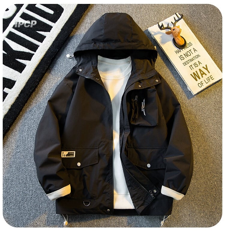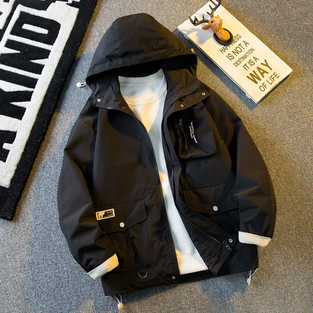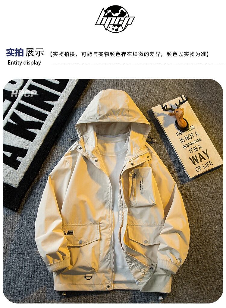 Hengpai Mountain フード付きブラックサムライジャケットメンズ春と秋の薄くてハンサムな機能的な防水ジャケット スプリング 春物 オータム 秋物 3381971778957339