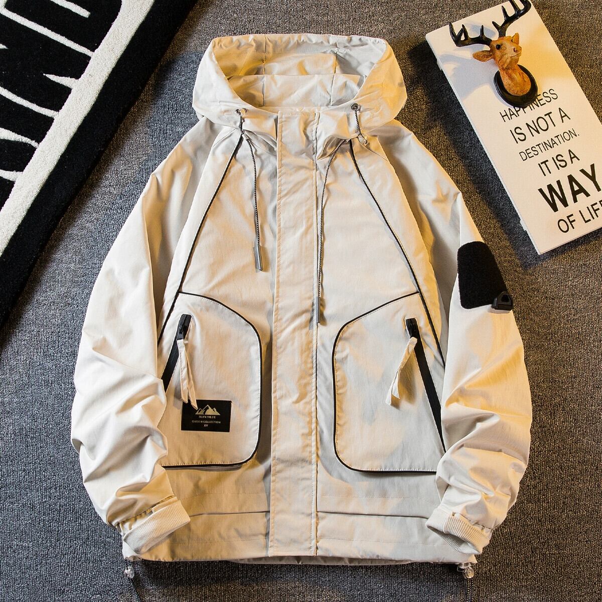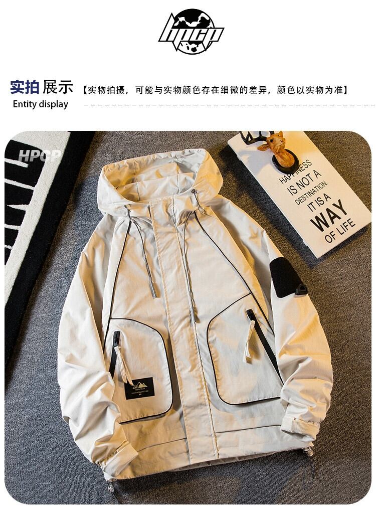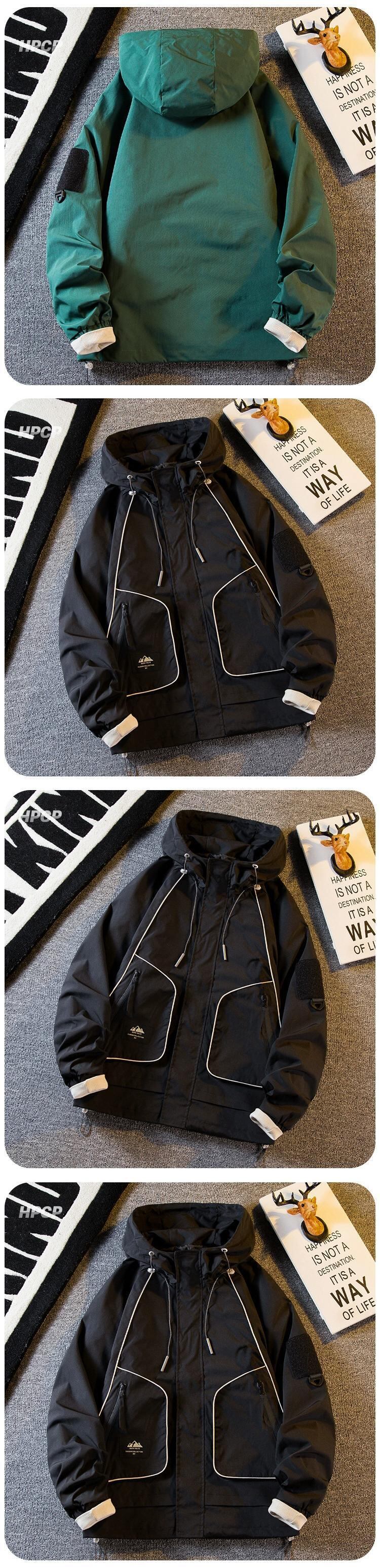 Hengpai 春と秋の登山フード付きジャケットメンズトレンディなメンズアウトドア防水ワークジャケット スプリング 春物 オータム 秋物 3381932845644775