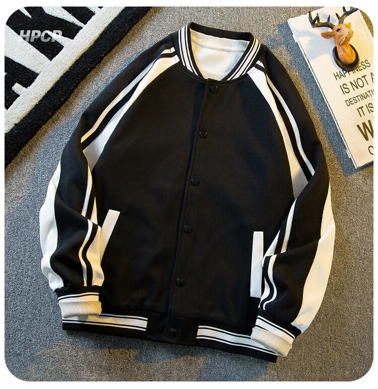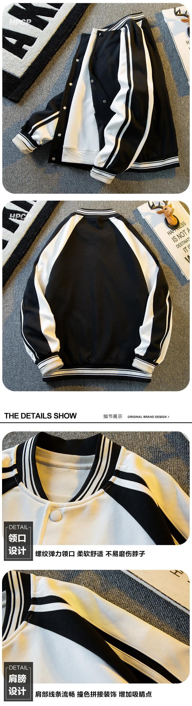 Hengpai 2024 春レトロアメリカンコントラストカラーベースボールジャケットメンズ春と秋のトレンディなカップルジャケットトップ スプリング 春物 オータム 秋物 3381992095715431