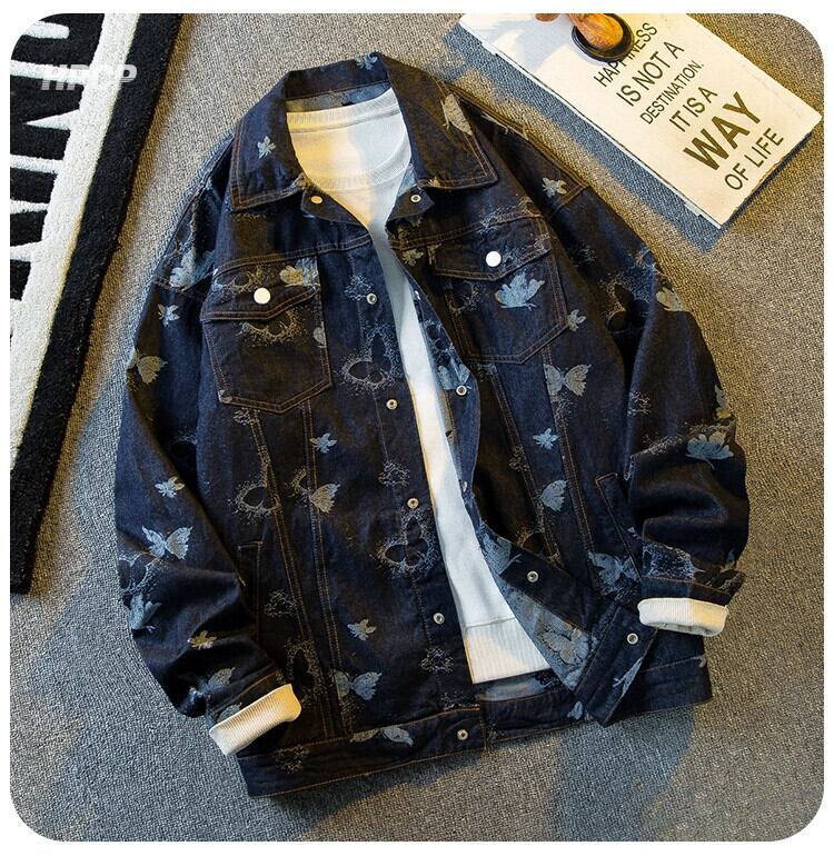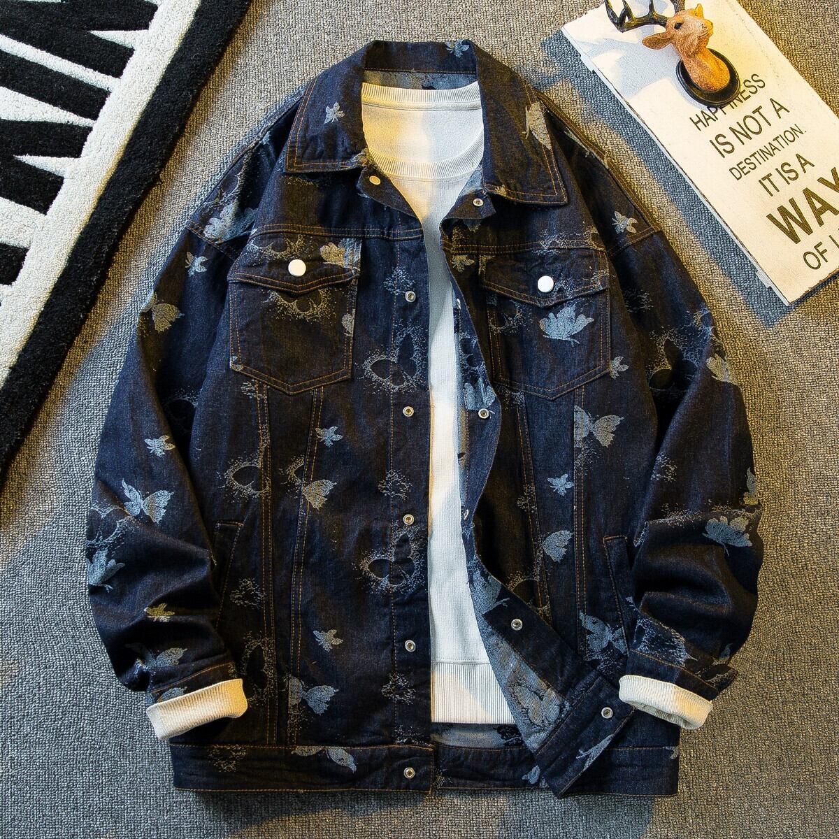 横型レトロ蝶柄ワークウェアデニムジャケットメンズ春秋トレンディブランドハンサムメンズラペルジャケット春着 スプリング 春物 オータム 秋物 338199422366522