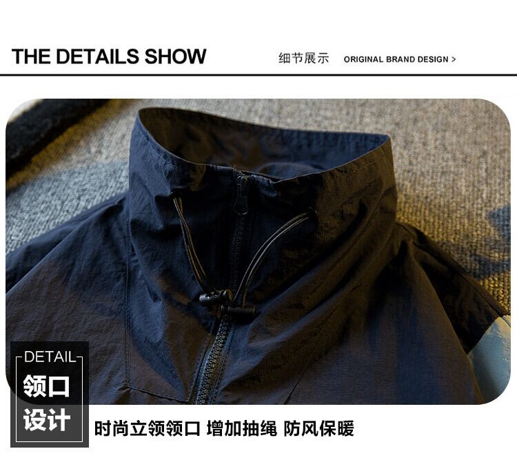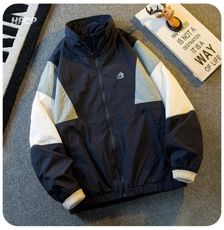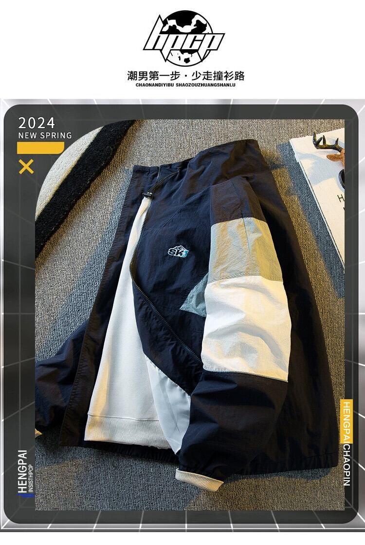 Hengpai Mountain レトロスタンドカラースプライシングコーチジャケットメンズ春と秋の薄い日焼け防止ジャケットジャケットメンズ スプリング 春物 オータム 秋物 3381954102933687