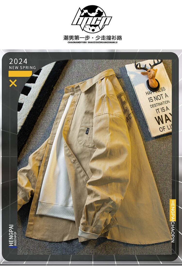 Hengpai アミ カーキ レトロ ワーク シャツ ジャケット メンズ 春と秋のハンサムなハイエンド アメカジ デニム ジャケット カジュアル スプリング 春物 オータム 秋物 3381944029046498