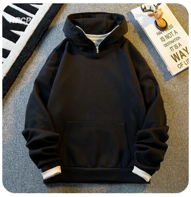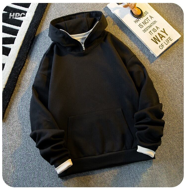水平アメリカンスタイルヘビーソリッドカラーボクシーフード付きスウェットシャツメンズハイエンドクリーンフィットショートパーカールーズジャケット 3381949201553800