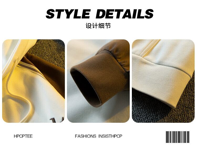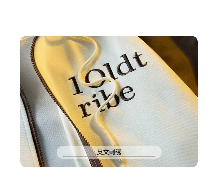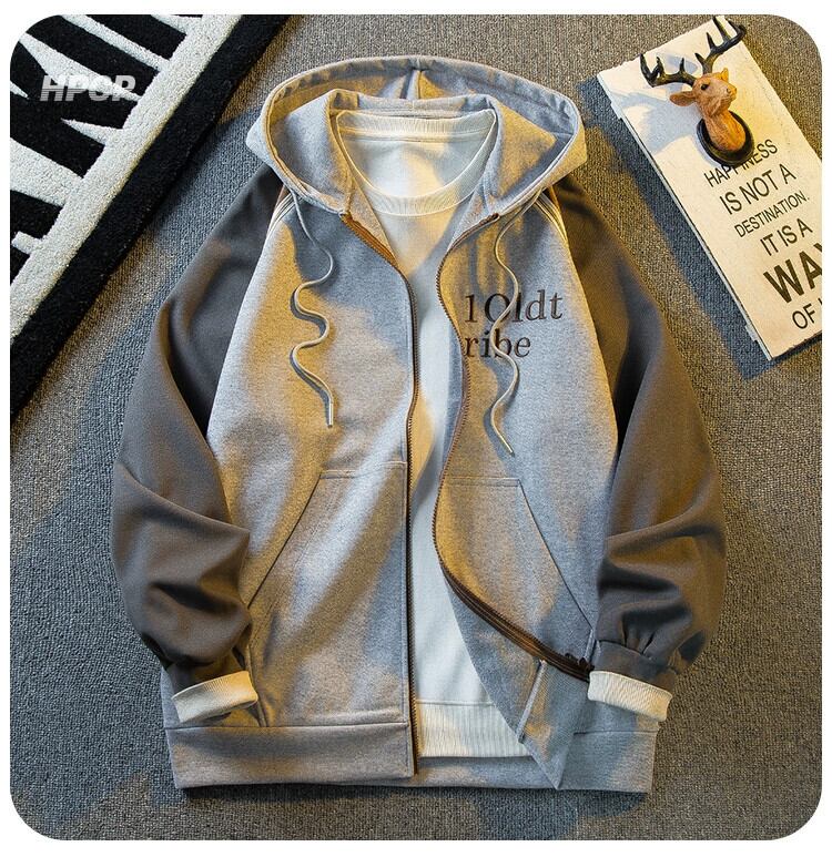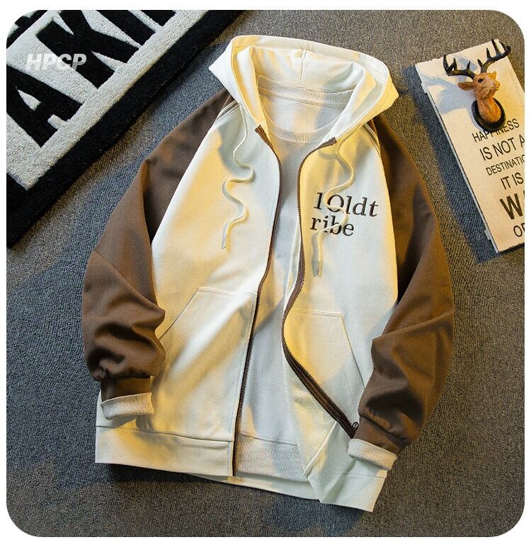 Hengpai 国民トレンドヘビー刺繍ジッパースウェットシャツメンズ春と秋のパッチワークコントラストカラーカーディガンフード付きトップルーズジャケット レッド スプリング 春物 オータム 秋物 3381945679981644