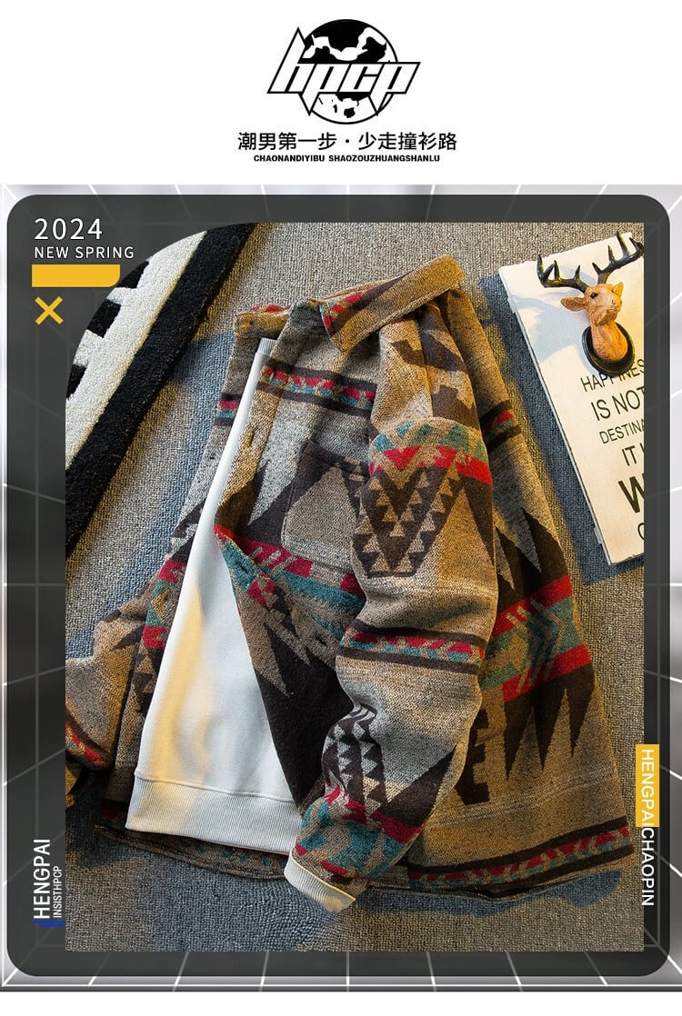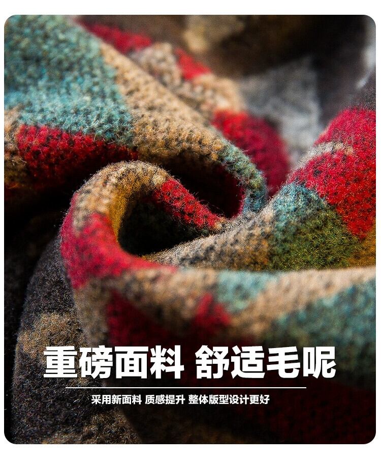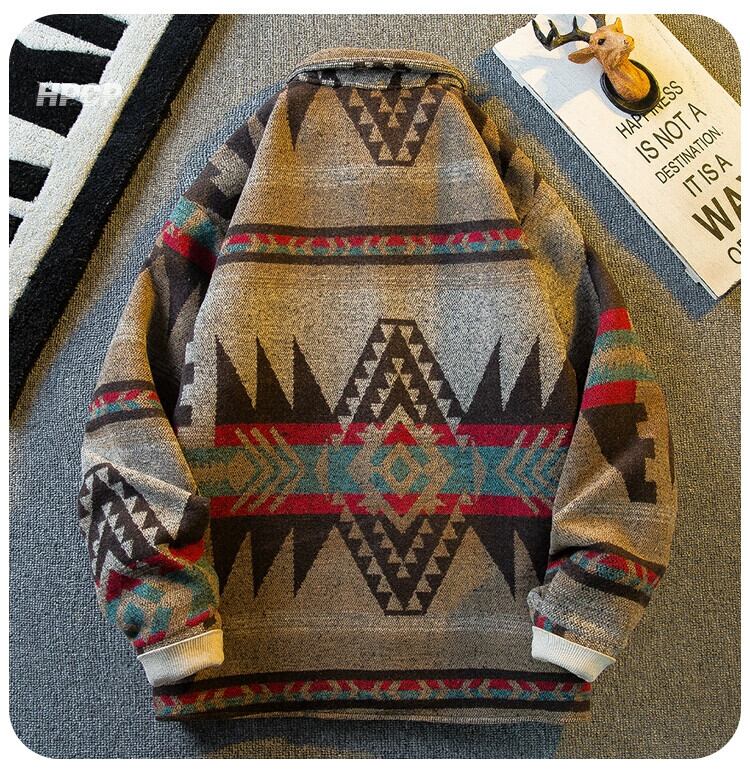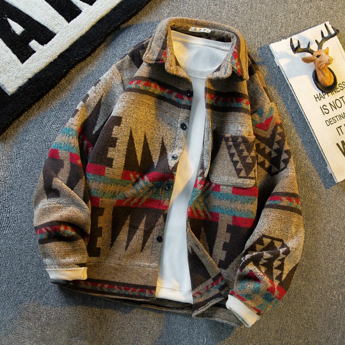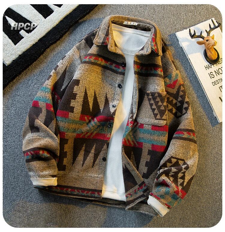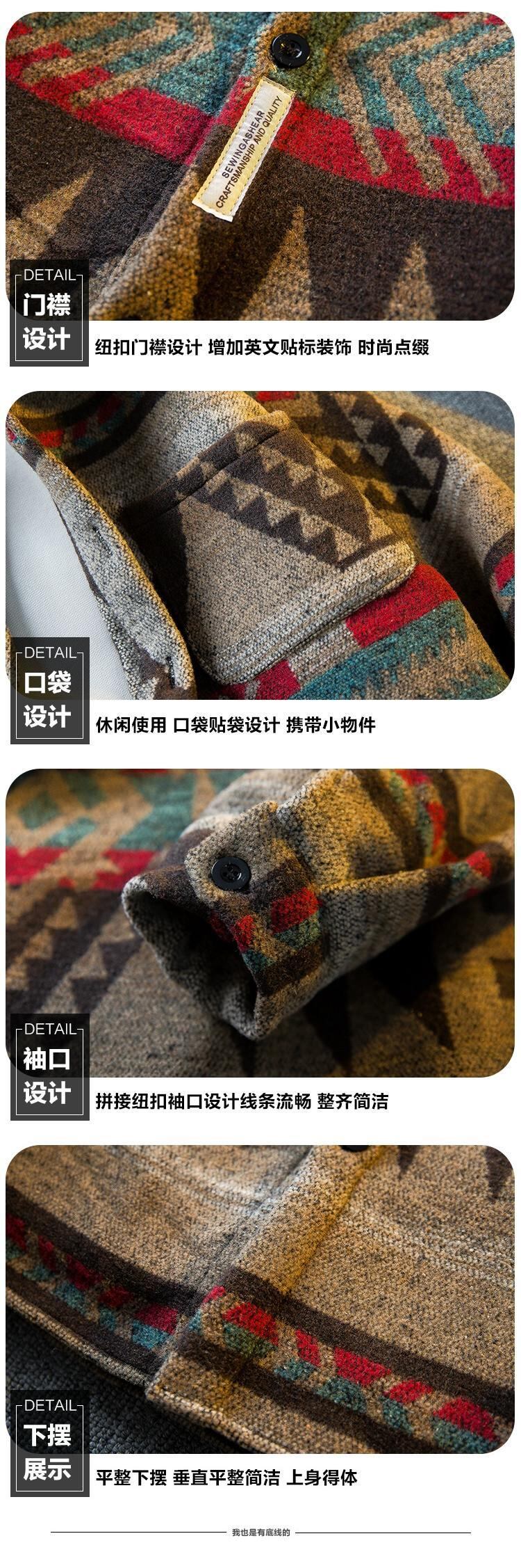 横型アメリカンレトロエスニックスタイルジャカードヘビー起毛シャツメンズ秋冬肥厚ウールラペルジャケットジャケット オータム 秋物 ウィンター 冬物 3381933712050172