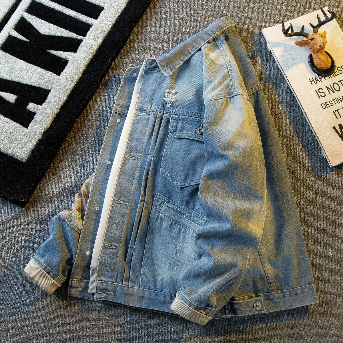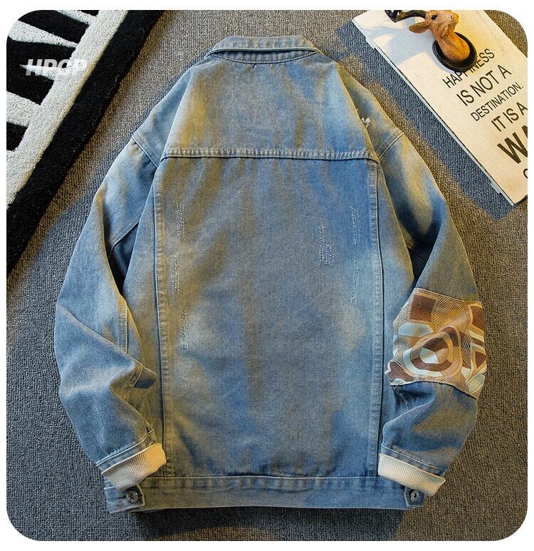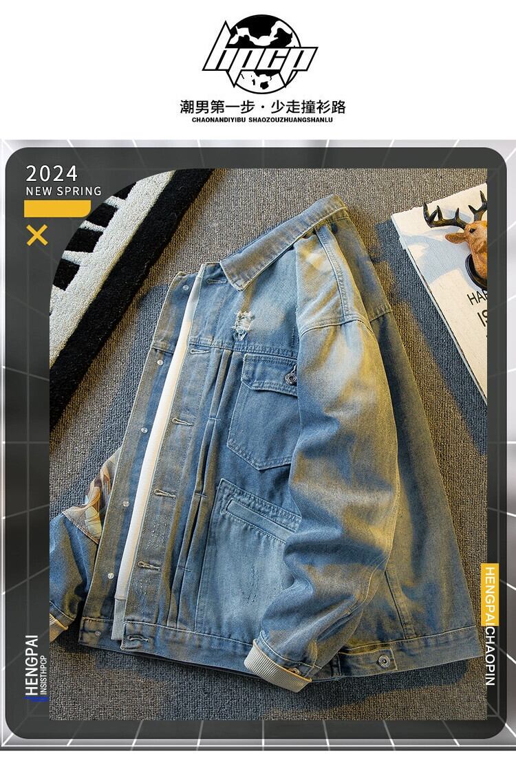 Hengpai Heavy Industry ウォッシュド スプライス デニム ジャケット メンズ トレンディでハンサムな作業服デニム ジャケット 3381926808590444