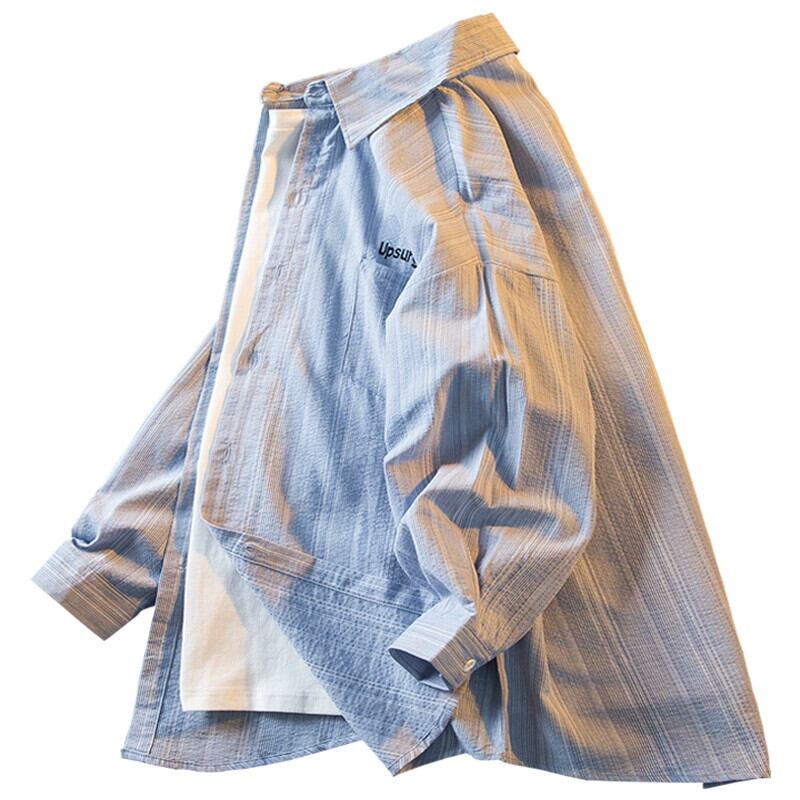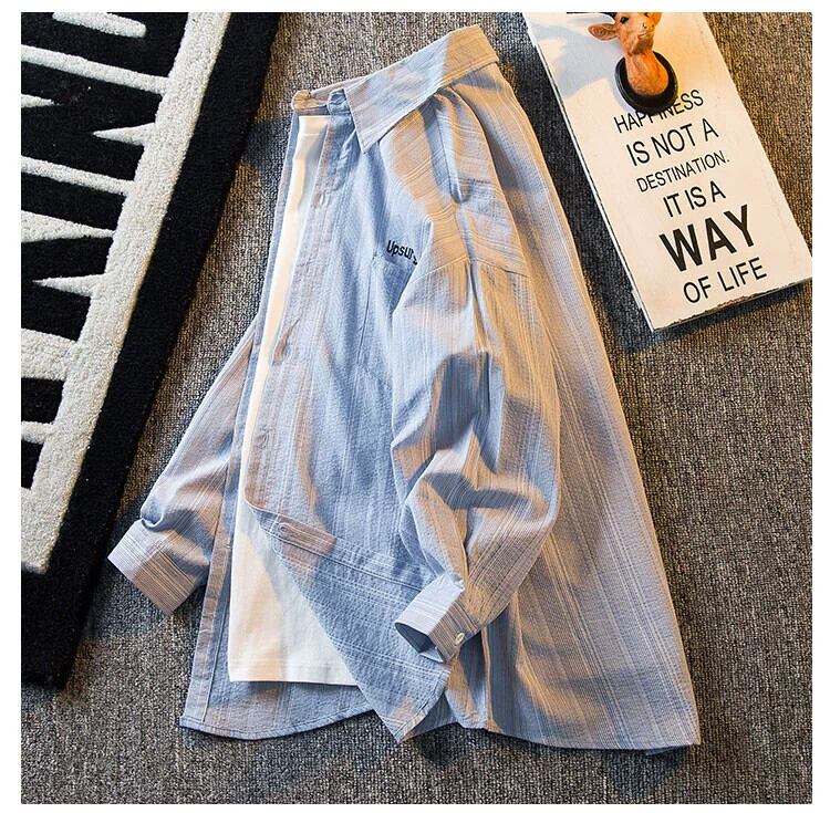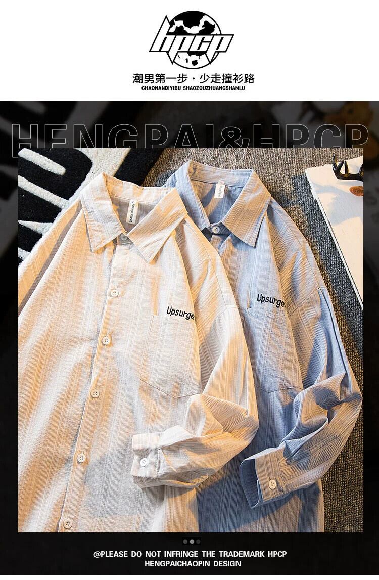 HPCP 夏薄い七分袖日焼け止めシャツメンズトレンディなブランドハイエンドストライプサンシェードシャツカジュアルジャケット男性 サマー 夏物 3381916775320082