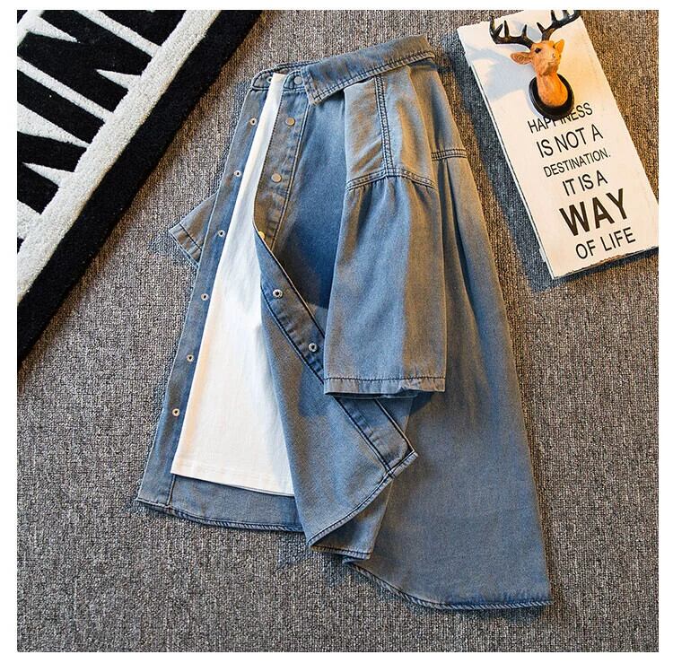 HPCP 半袖デニムシャツメンズ夏薄いデザインニッチイントレンディなカップルカジュアルルーズシャツ サマー 夏物 3381962412833289
