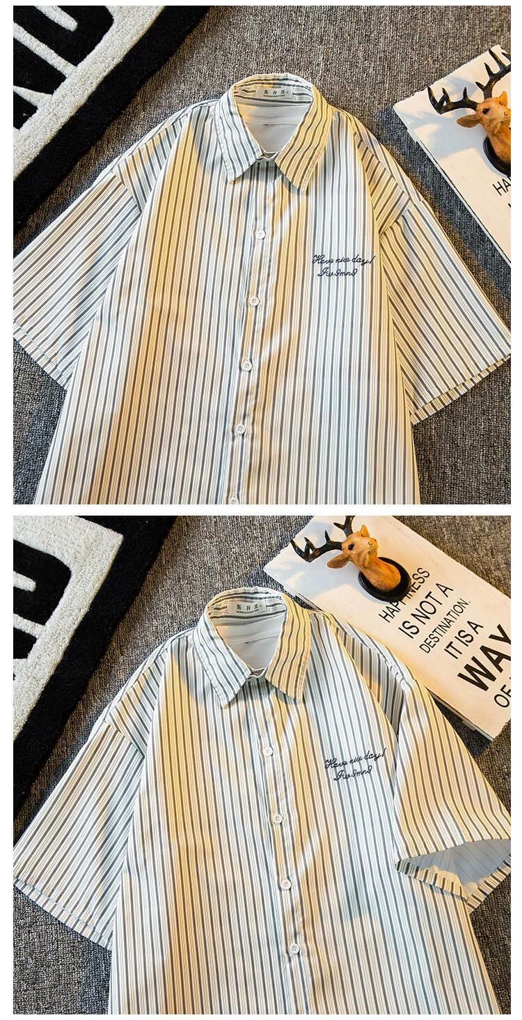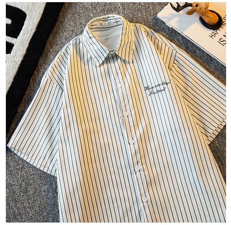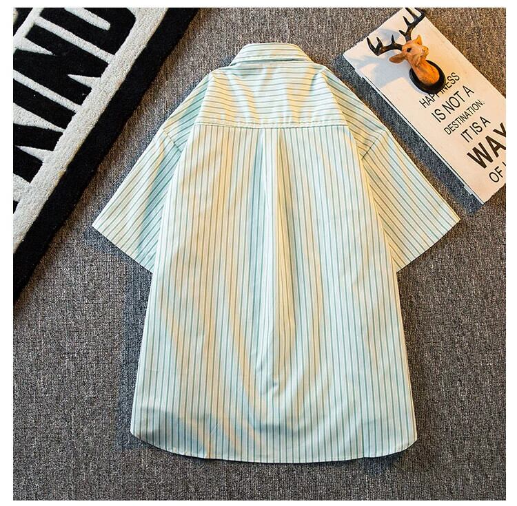 HPCP ストライプシャツメンズ半袖夏ハイエンドトレンディブランドイン香港スタイルルーズカジュアルハンサム半袖シャツ サマー 夏物 3381949898209595