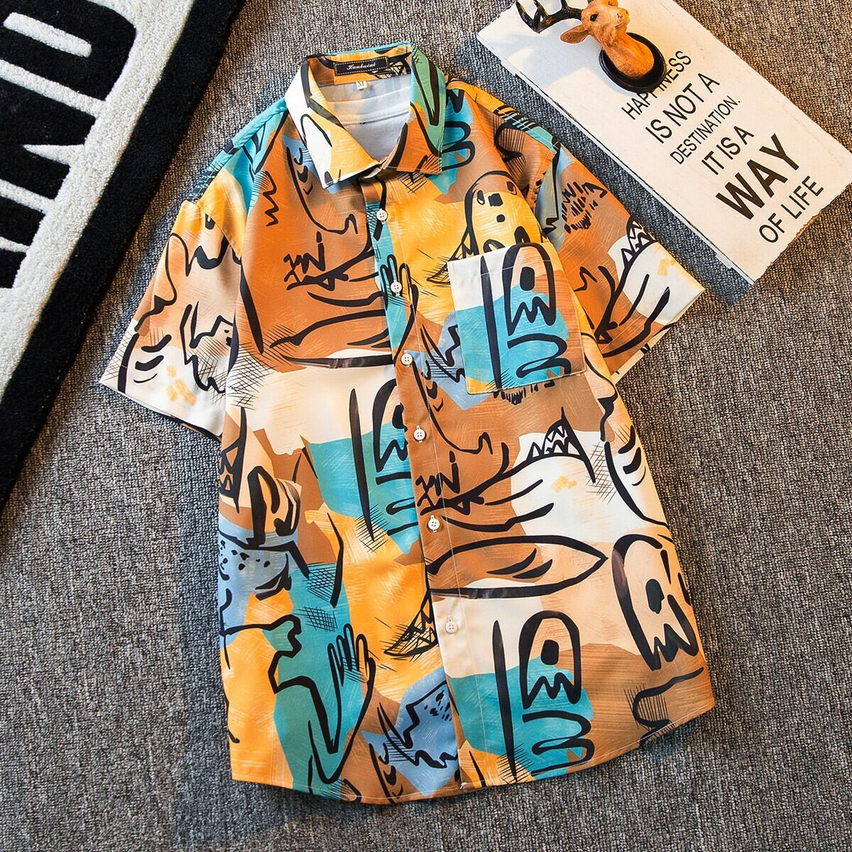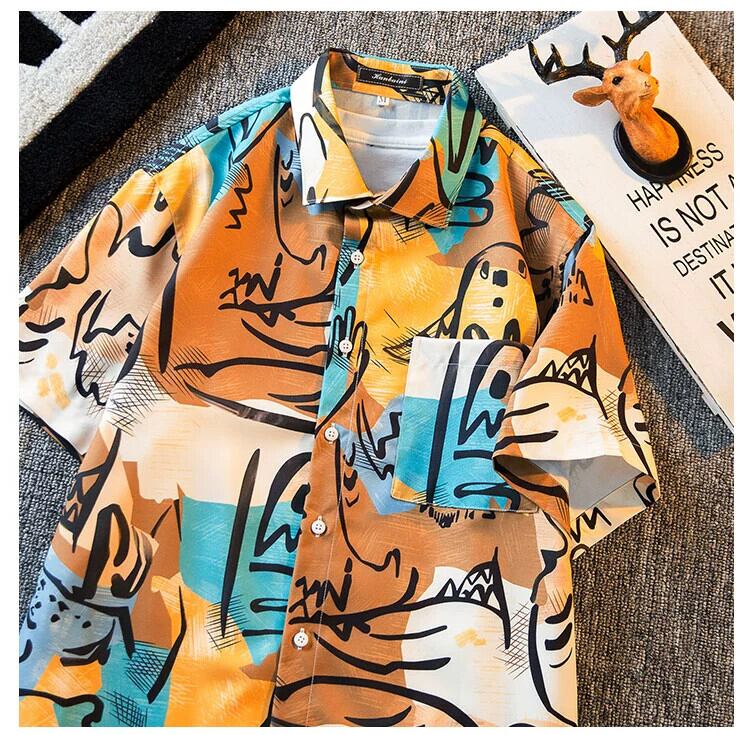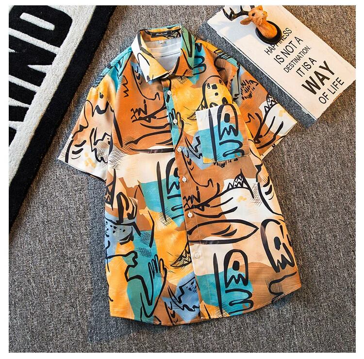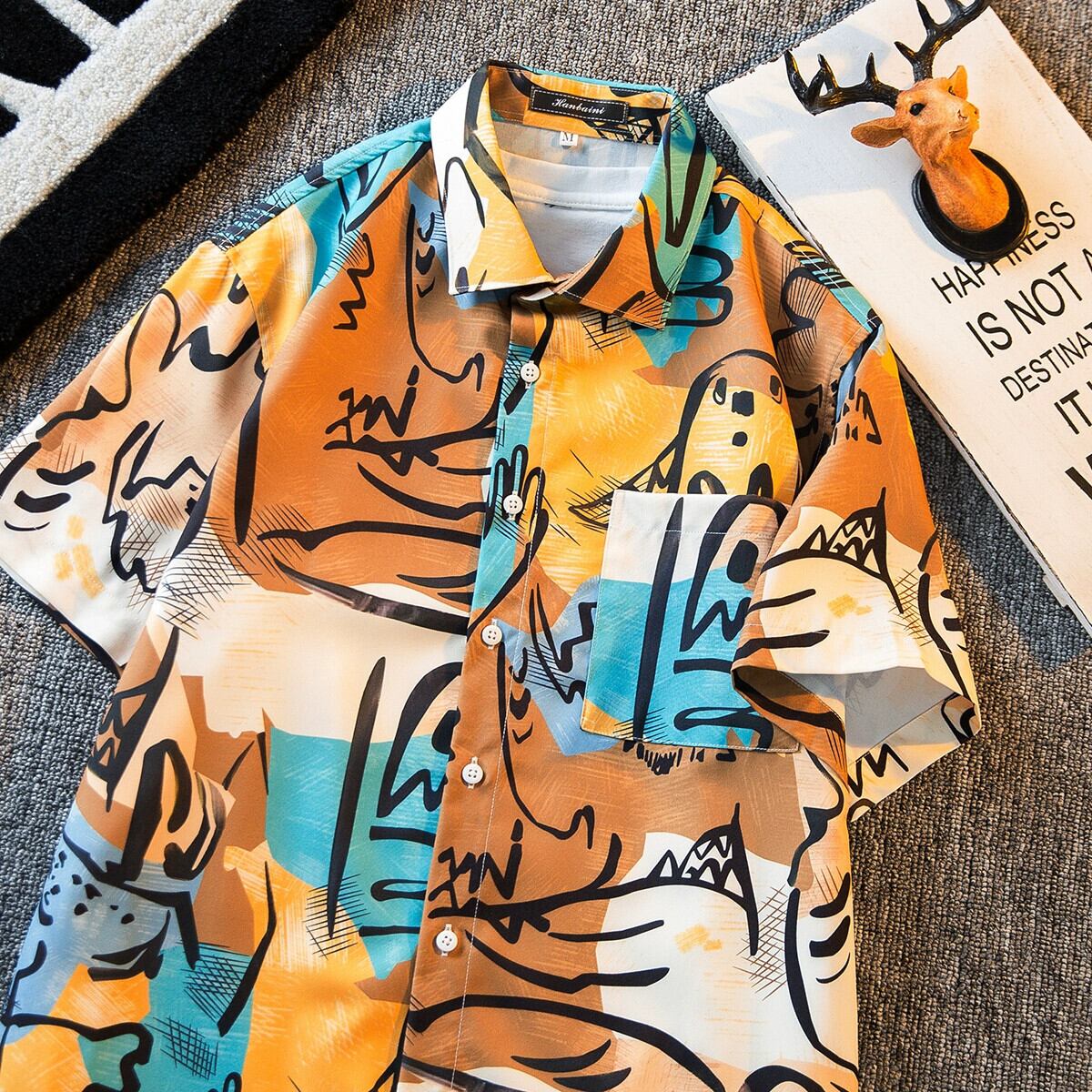 HPCP 塗装落書き半袖シャツメンズ ese トレンディなブランドインハンサムなハイエンドカジュアルルーズメンズシャツ 33819307983655