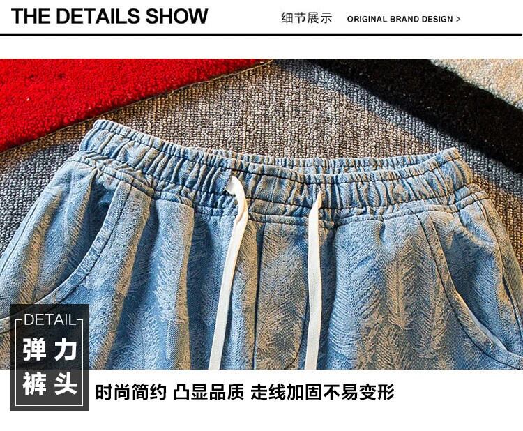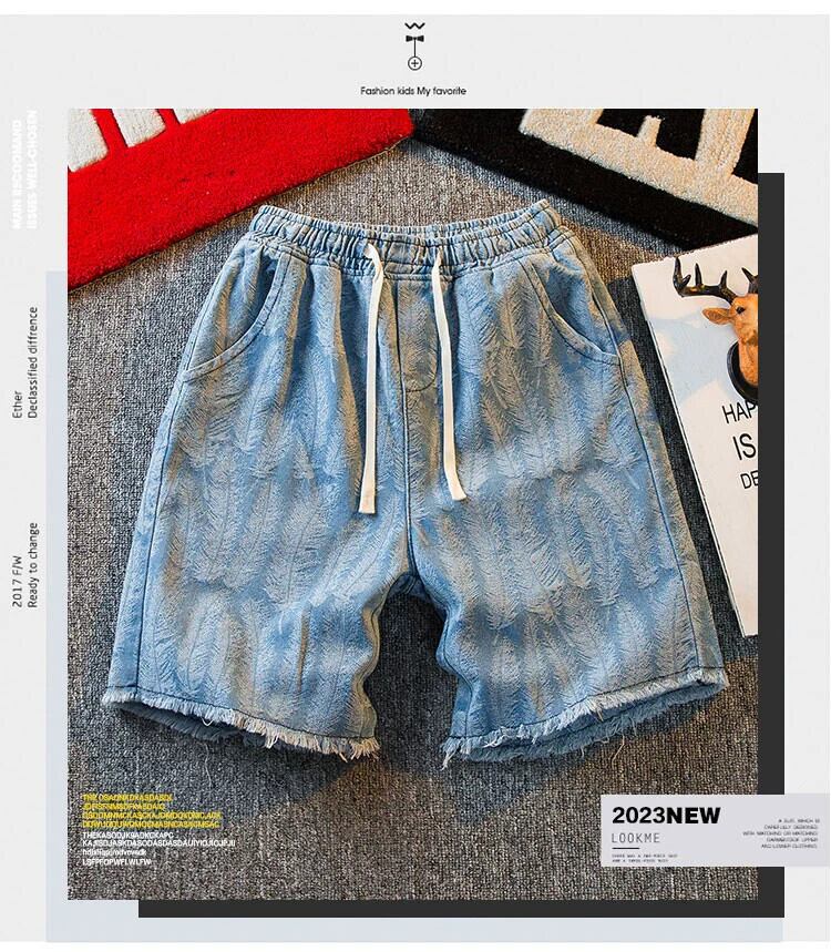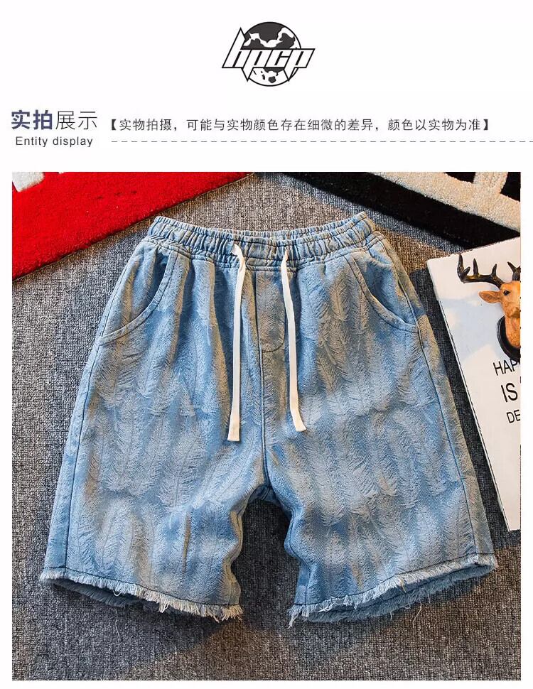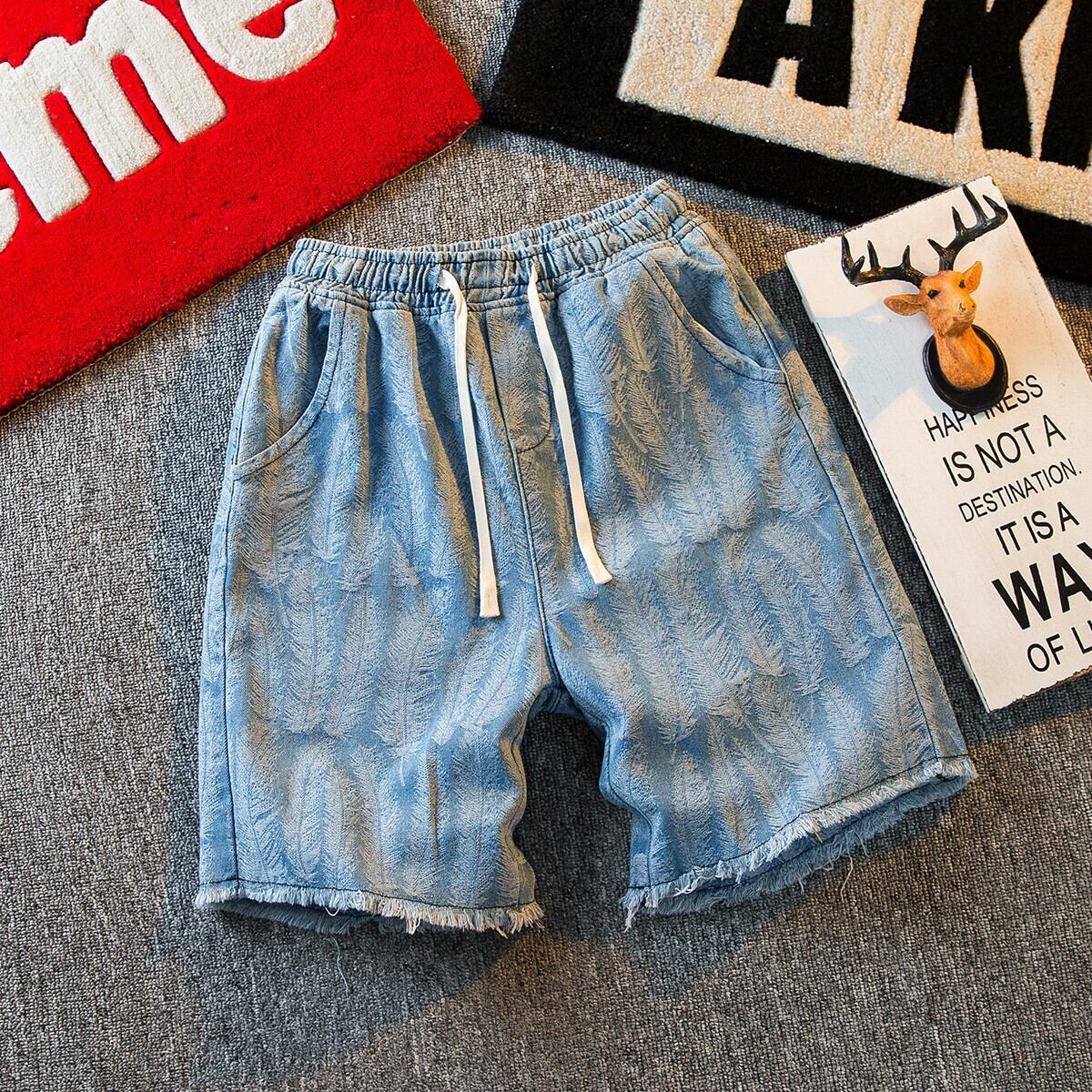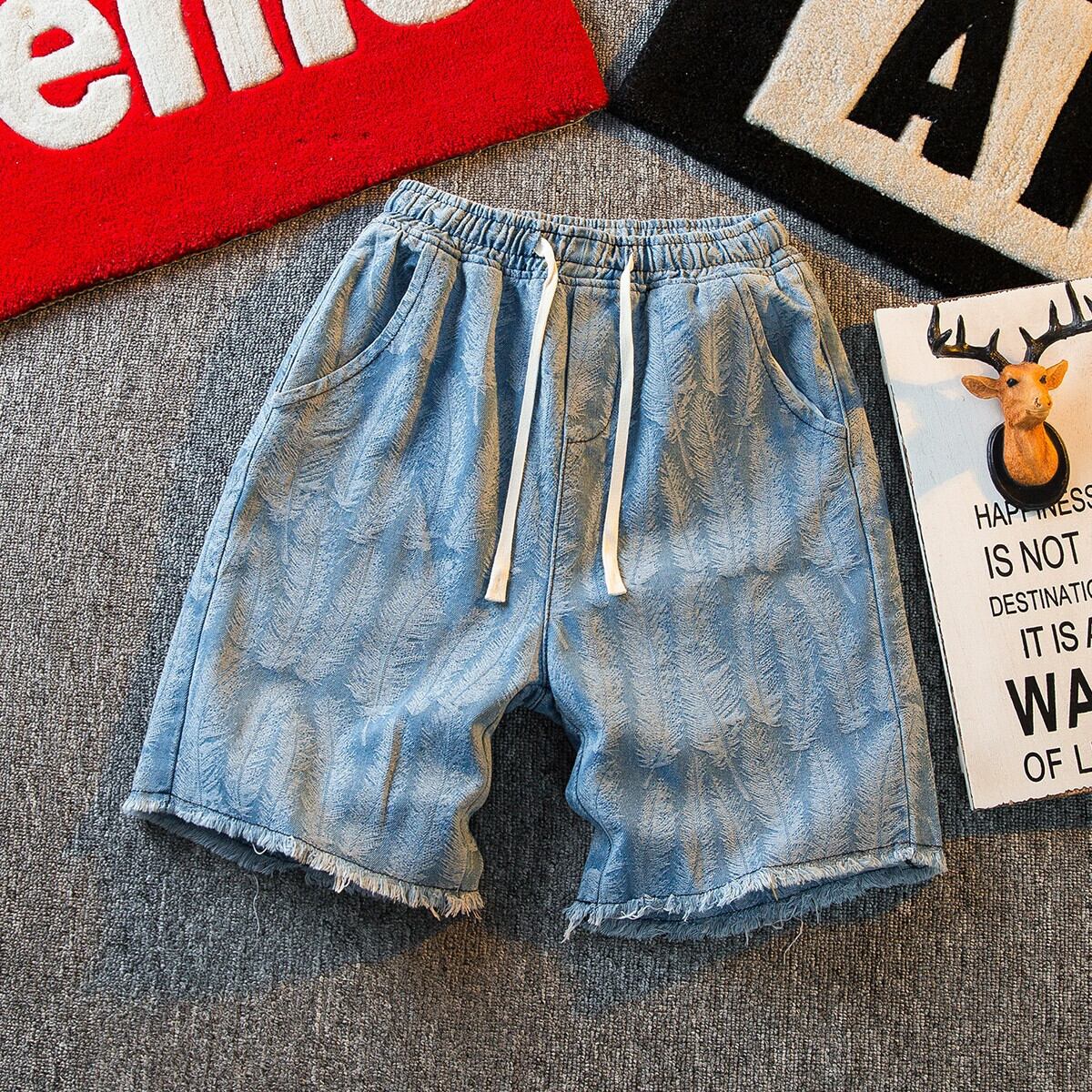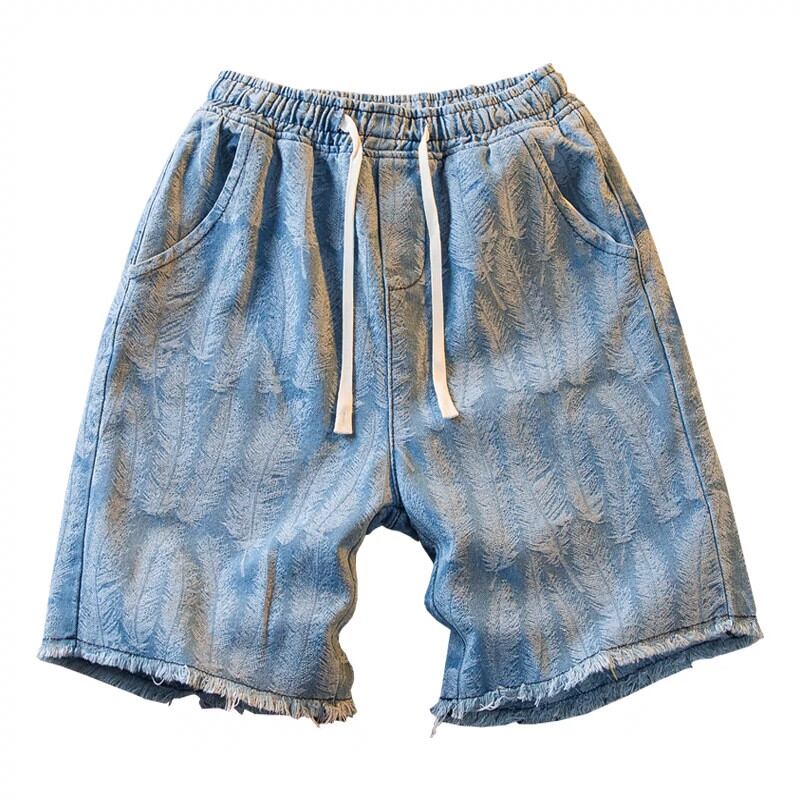 HPCP ジャカードフェザー巾着デニムショートパンツメンズ 5 点ルーズ夏カジュアルハンサムハイストリートファッションブランド 5 点パンツ サマー 夏物 ショーツ ブルマー 3381910571129878