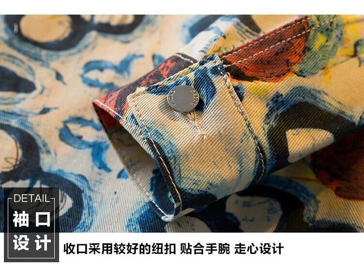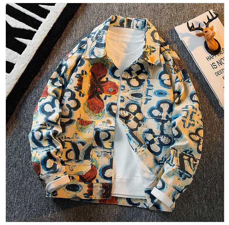 HPCP レトロなオールオーバー プリント デニム ジャケット メンズ 春と秋、ハイエンドのニッチ トレンディー ブランド、ハンサムなメンズ プリント カジュアル ジャケット スプリング 春物 オータム 秋物 338192779698300