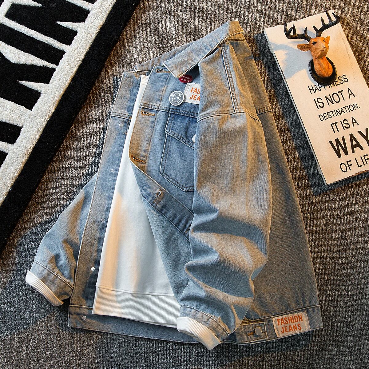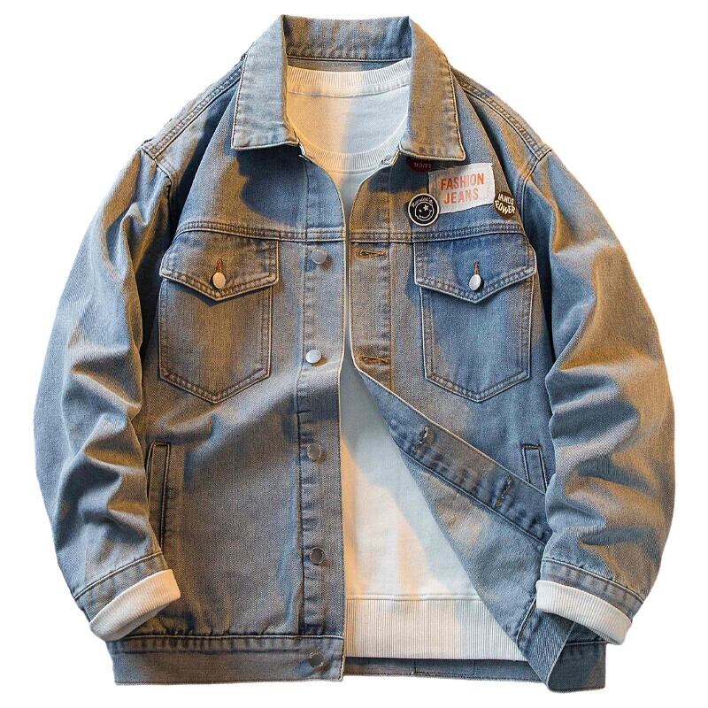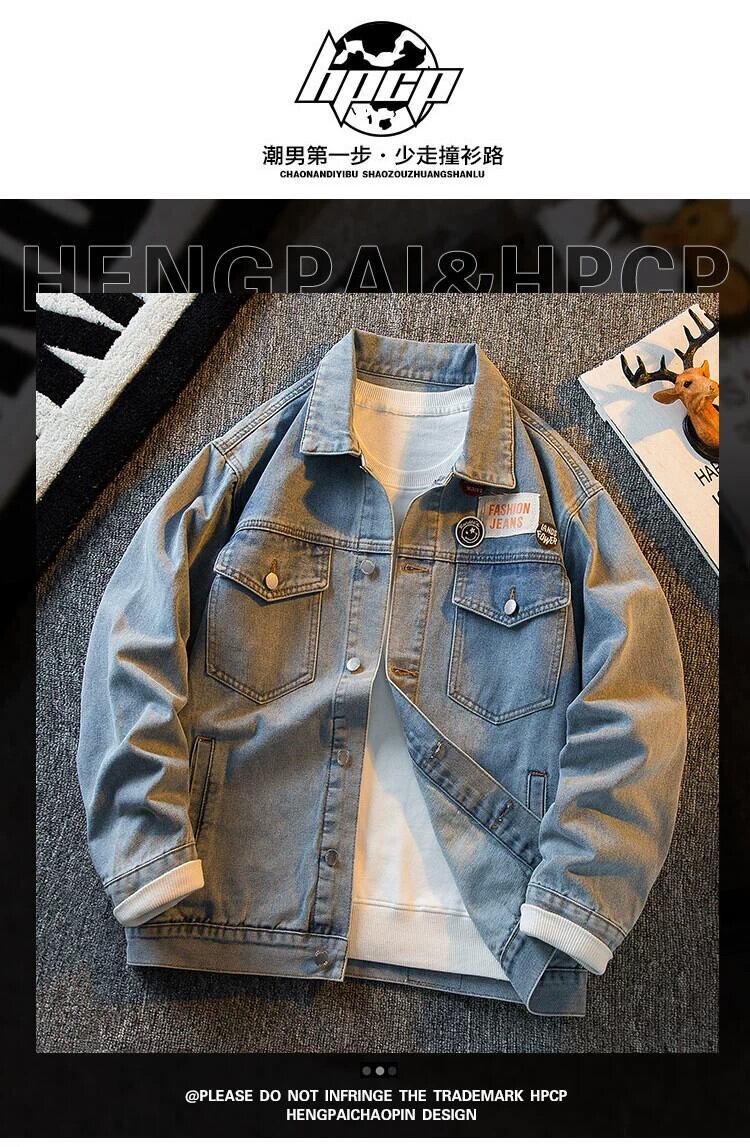 HPCP ese ワッペンウォッシュデニムジャケットメンズ秋トレンディブランドハンサムルーズボーイズカジュアルカップルジャケット オータム 秋物 3381966245004675