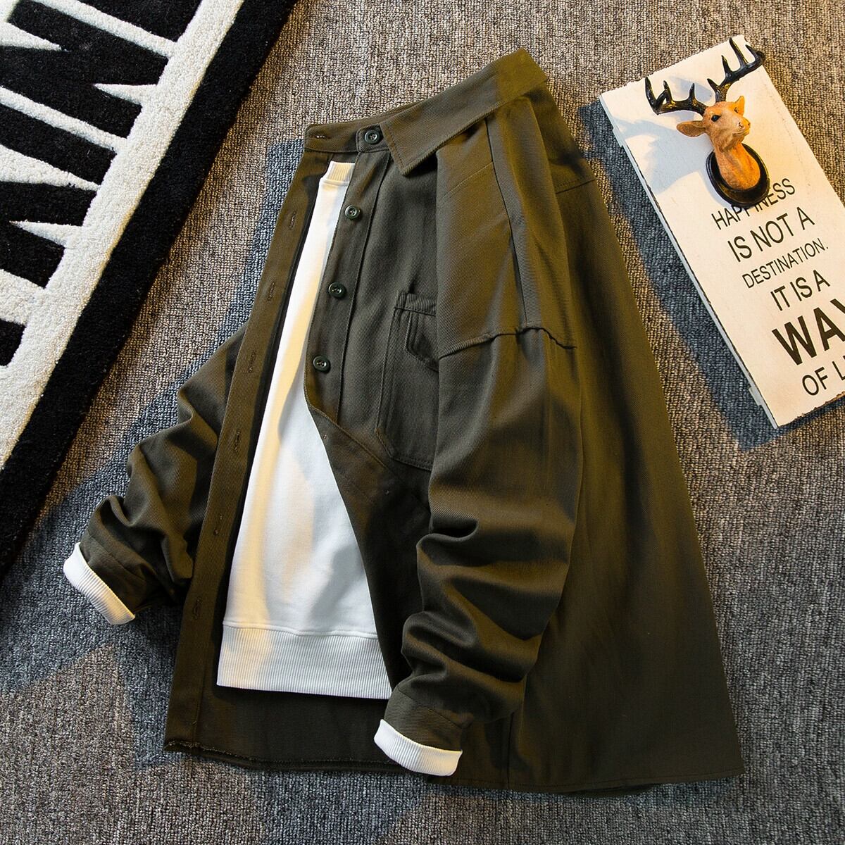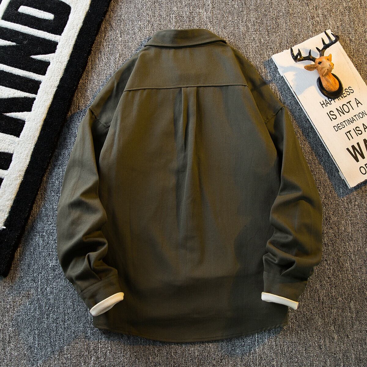 HPCP ese レトログリーンワークシャツメンズ長袖ハイエンドハンサムメンズカジュアルシャツ初秋ジャケット ロング オータム 秋物 3381929602321956