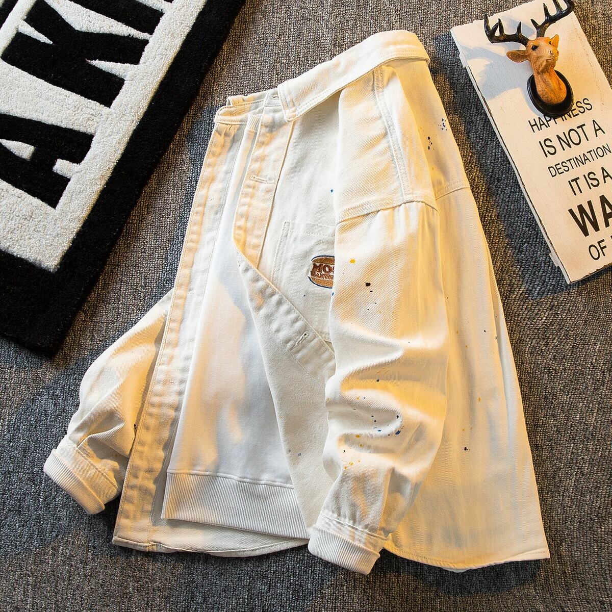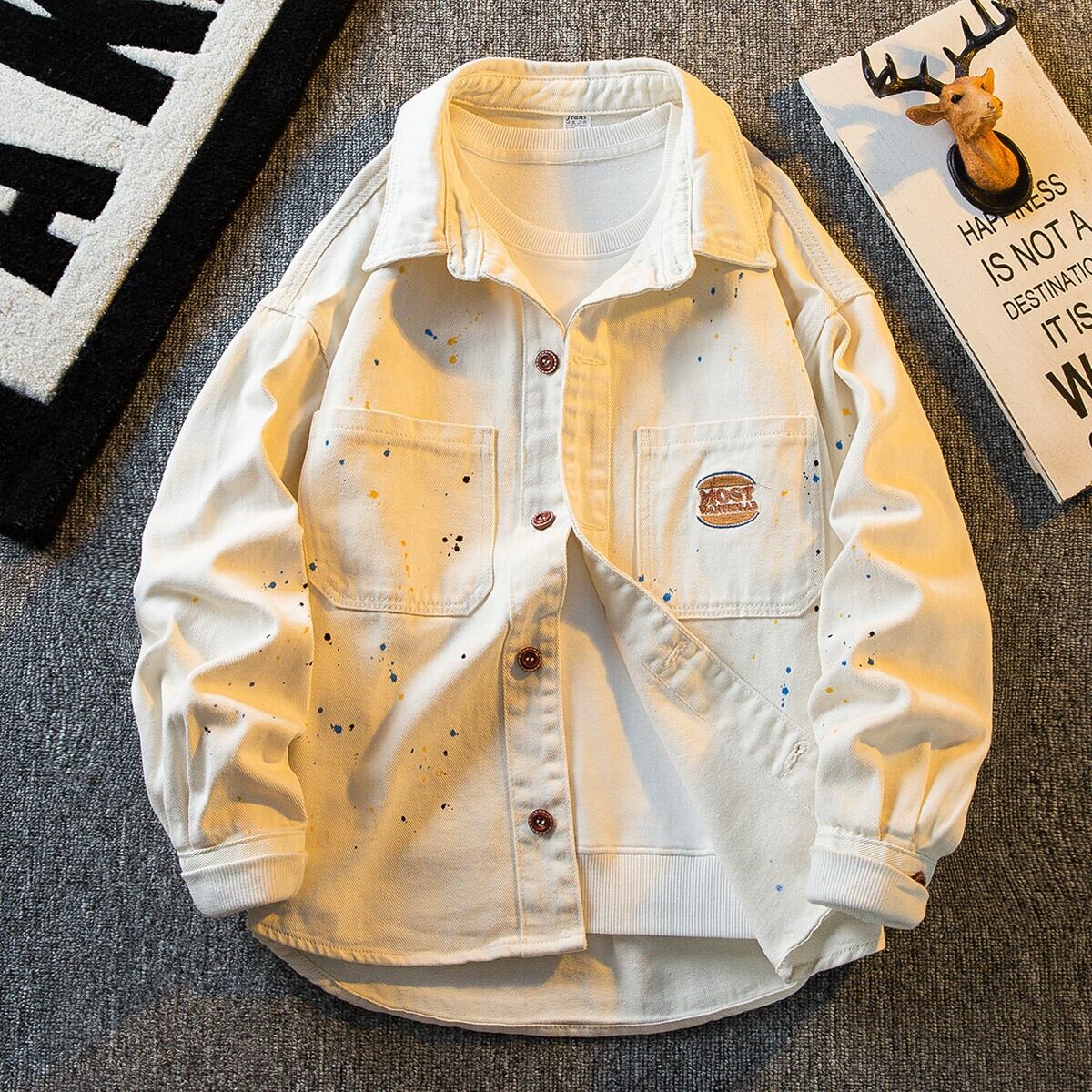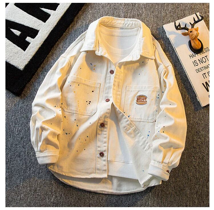 HPCP アメリカのスプラッシュインクデニムジャケットメンズ春と秋のトレンディなブランドインルースレトロニッチカジュアルラペルジャケットメンズ スプリング 春物 オータム 秋物 3381936324851448