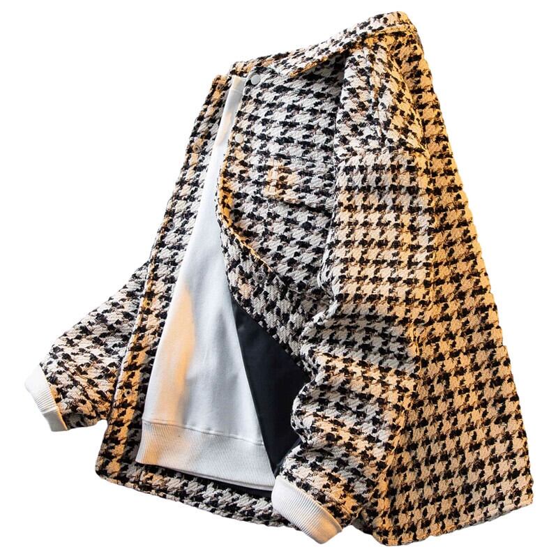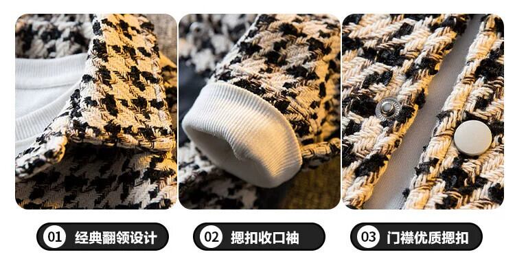 HPCP アメリカンレトロアプリコット千鳥格子コートメンズ春と秋のハイエンドハンサムメンズスモールフレグランススタイルニットジャケット スプリング 春物 オータム 秋物 338193663528923