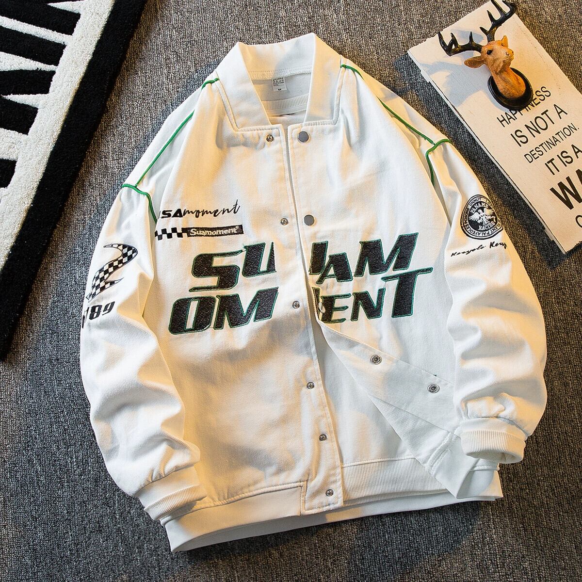 HPCP アメリカンレーシングスタイル刺繍野球ジャケットメンズ春と秋のトレンディなブランドインハイストリートルーズオートバイジャケット男性 レッド スプリング 春物 オータム 秋物 3381965204697523