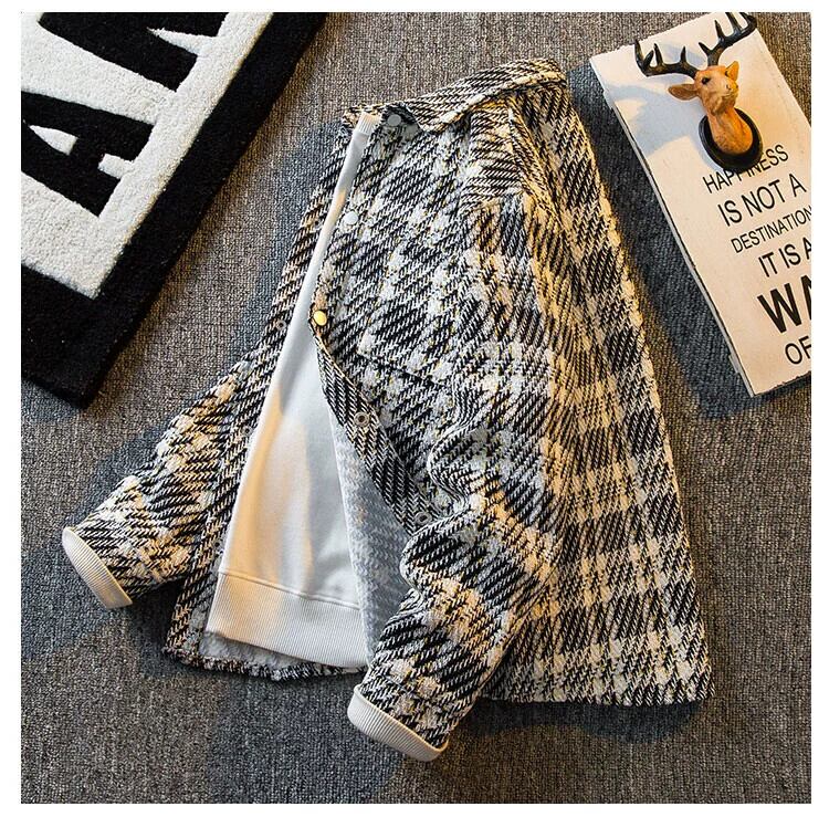 HPCP 秋の新ニットチェック柄小さな香りジャケットメンズ春と秋のトレンディなブランドハンサムな男性のラペルカジュアルジャケット スプリング 春物 オータム 秋物 3381948781475495