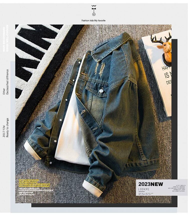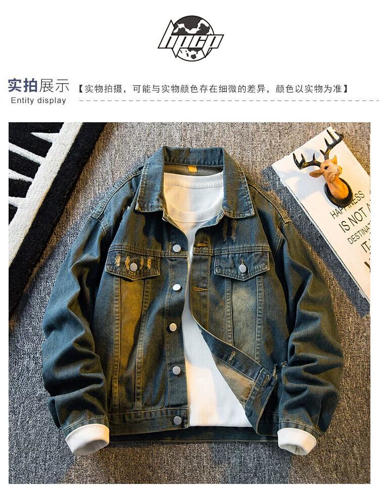 HPCP アメリカのハイストリートイエロー泥染めショートデニムジャケットメンズ春秋ボーイズトレンディブランドハンサムラペルルーズジャケット スプリング 春物 オータム 秋物 3381980672667057