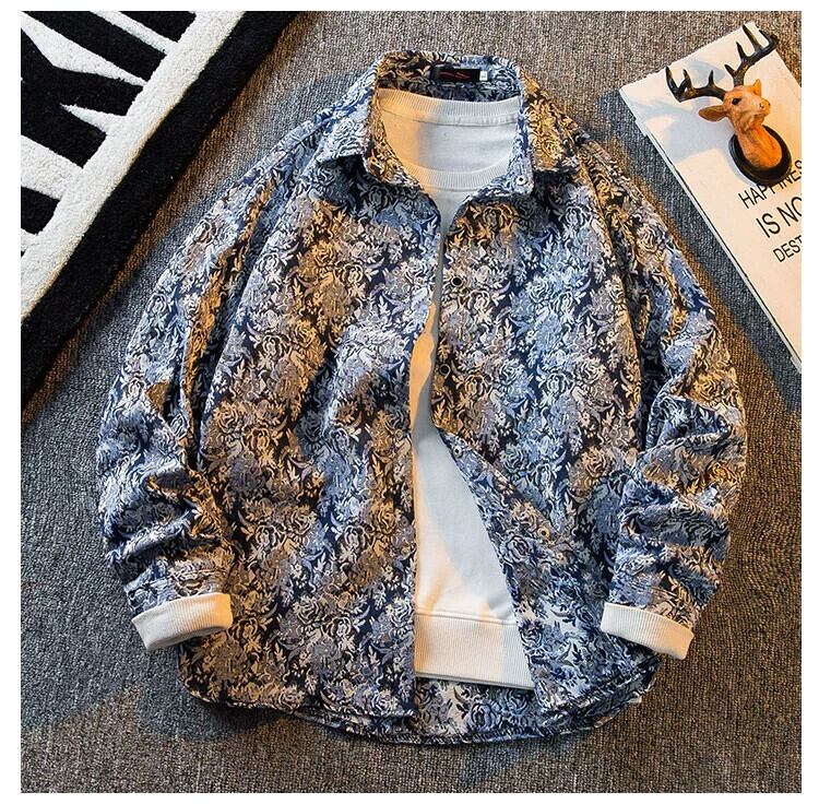 HPCP ese ヴィンテージオールオーバー花柄ハイエンドシャツメンズ長袖ハイエンドメンズカジュアルシャツジャケット ロング ビンテージ 3381954198620354
