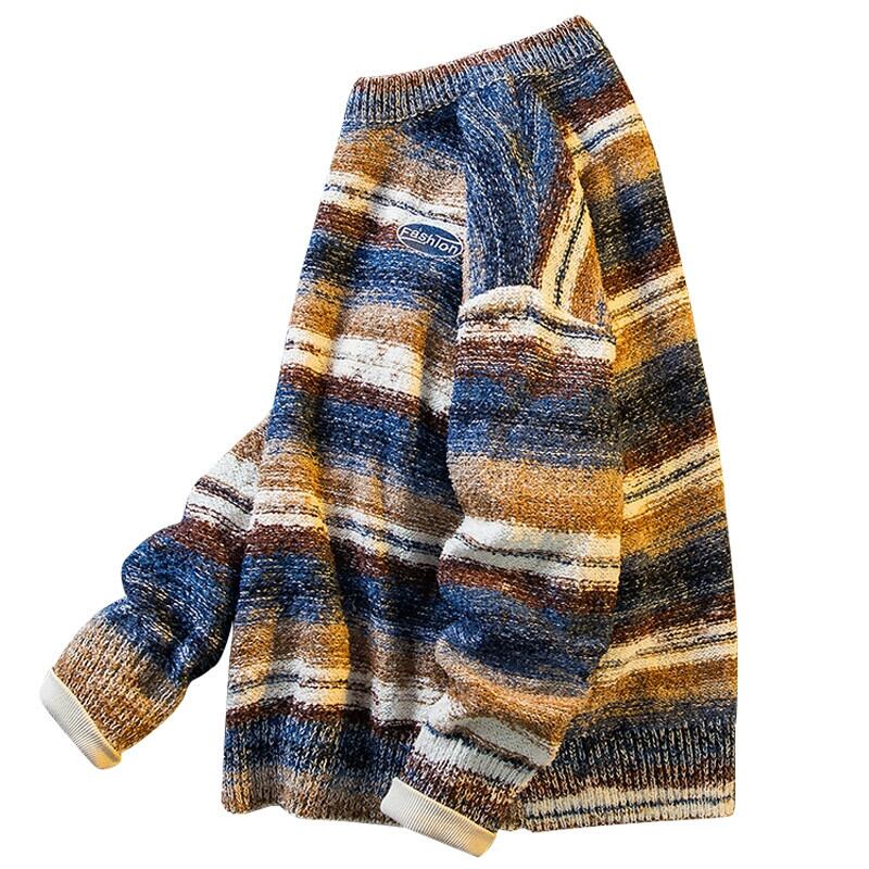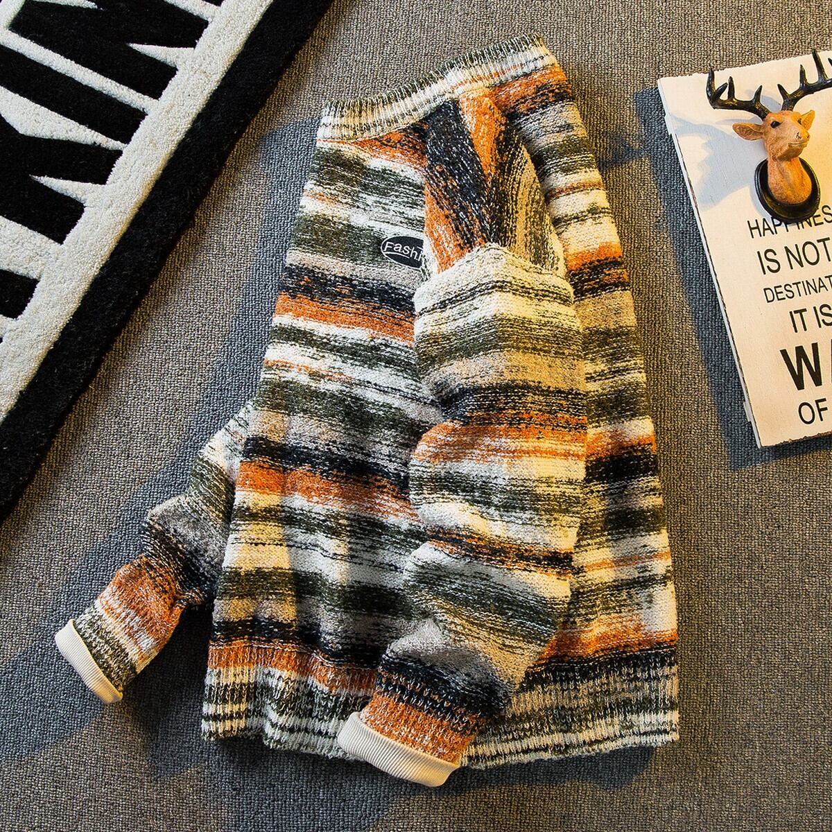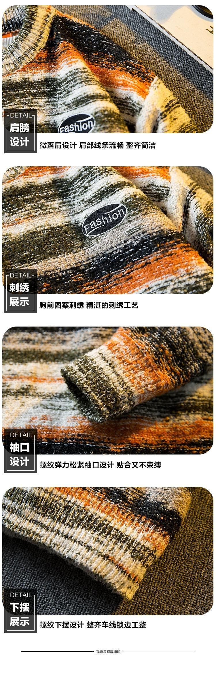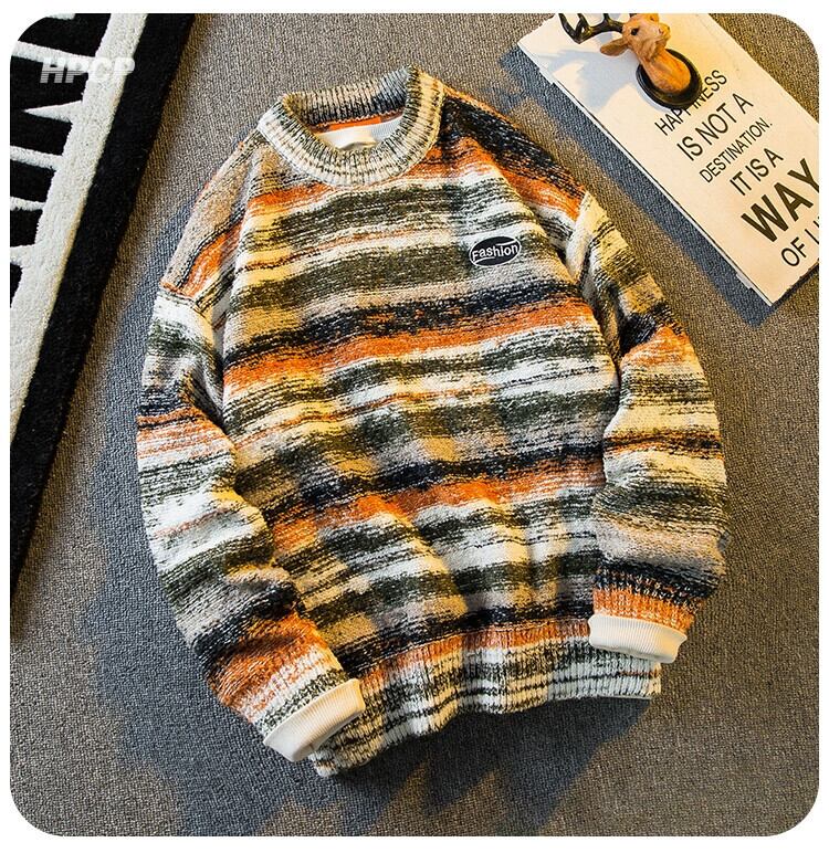 水平トレンディなアメリカンスタイルのグラデーションストライプセーターメンズ秋冬ファッションブランド怠惰なハイエンドレトロプルオーバーセーター オータム 秋物 ウィンター 冬物 3381916615074175