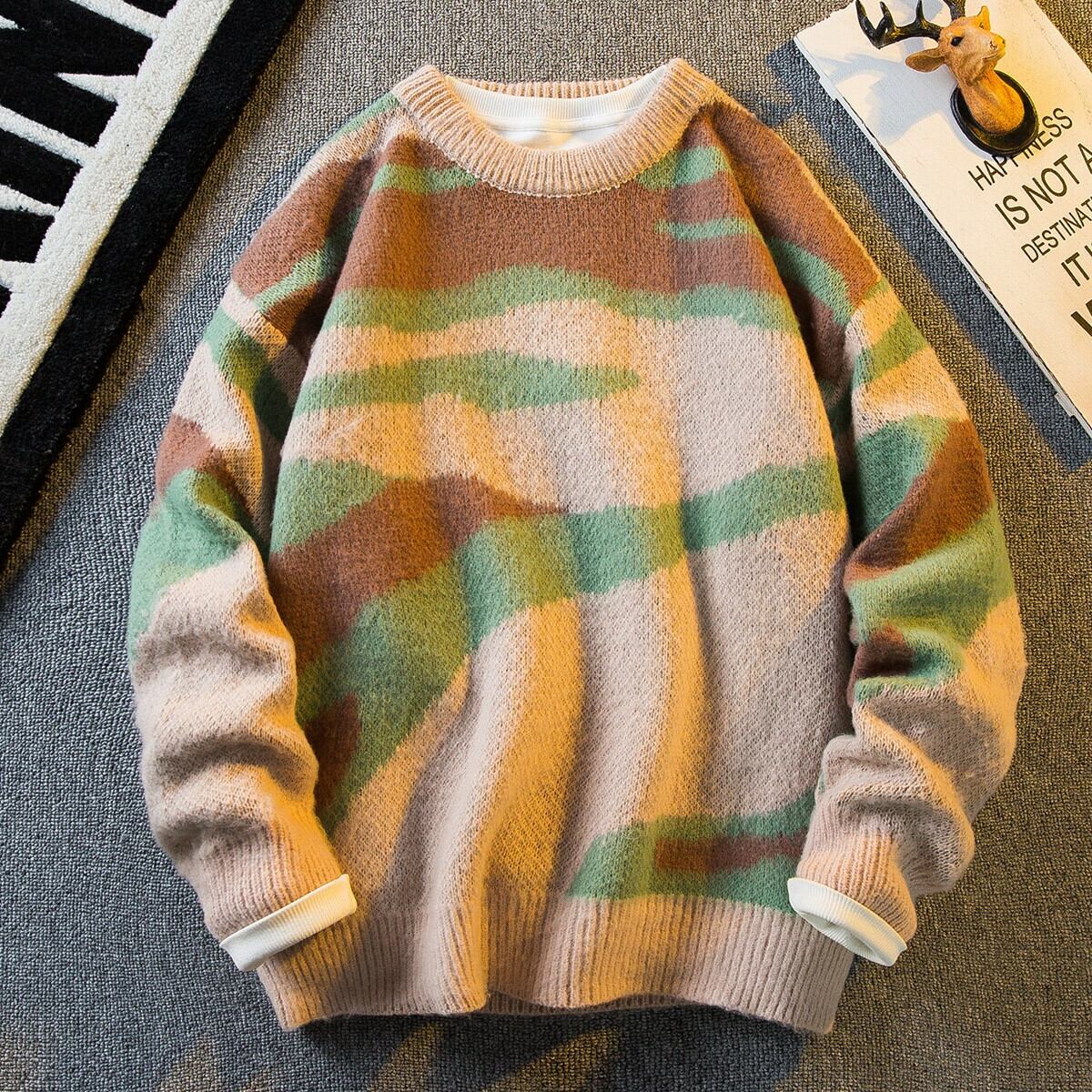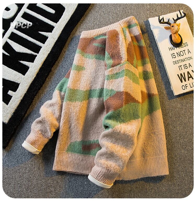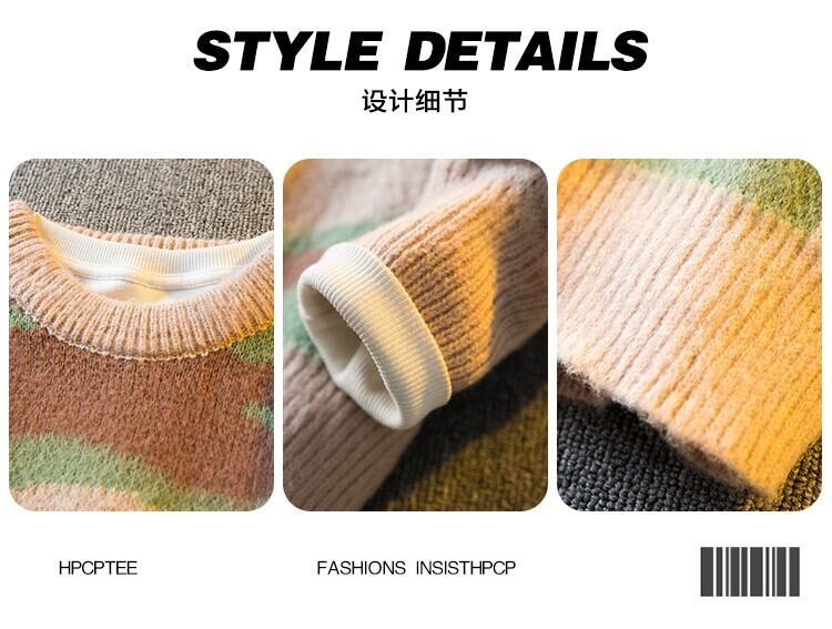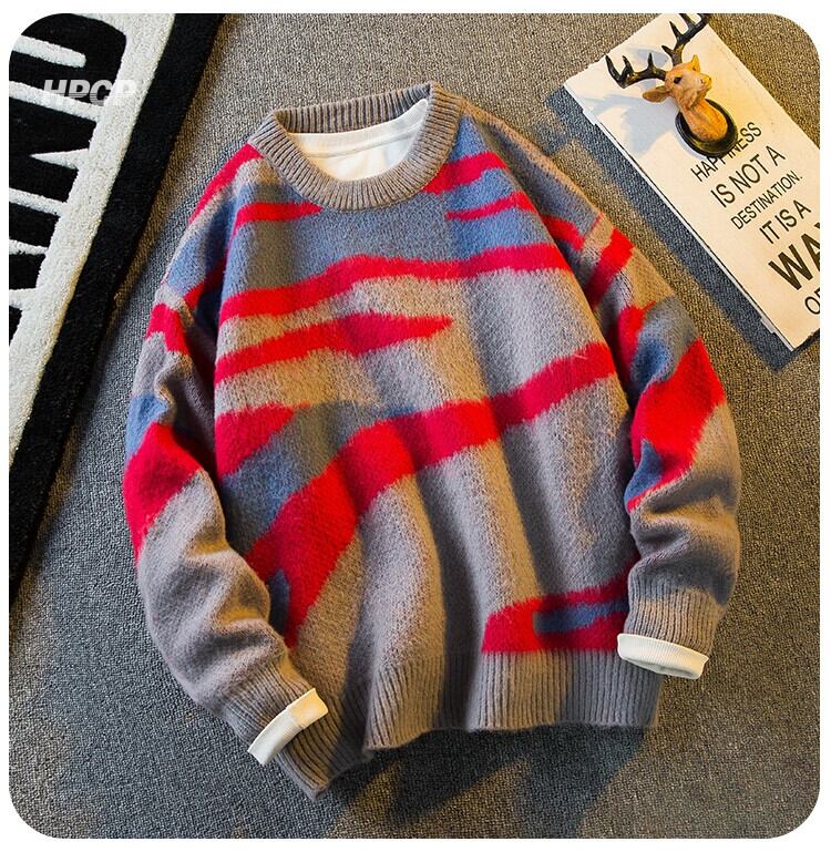 Hengpai トレンディなアメリカンレトロな対照的なカラーデザインのセーターメンズトレンディなブランド秋と冬ゆるい怠惰なスタイルのカップルのニットセーター オータム 秋物 ウィンター 冬物 3381957933897896